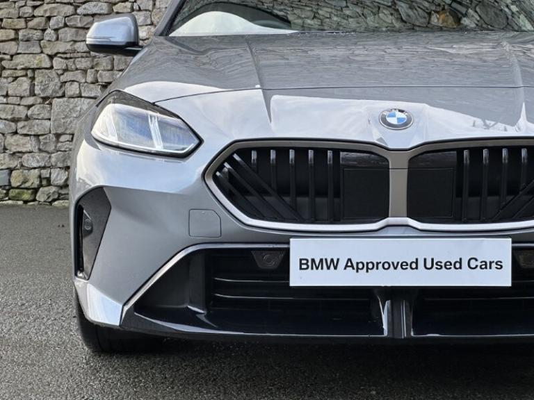 Lloyd BMW South Lakes are pleased to present this BMW 1 SERIES 120 M Sport 5dr finished in stunning Skyscraper Grey Metallic and complimenting M Alcantara Veganza combination Black upholstery. Currently being used as a Service Loan, new in March 2025, this sleek BMW has a great specification and is in excellent condition. The BMW Approved Used Car scheme offers complete peace of mind with receiving the remainder of the 3 years warranty & roadside assistance from when the car was registered. This BMW comes complete with a specification that balances style, substance, and comfort for the driver who doesn't want to compromise. Equipped with the desirable 19'' M Lt ALy wheels Y-spoke style Alloys, Sun Protection Glass, M Adaptive Suspension, Front Heated Seats, Driving Assistant and Parking Assistant. We do a 124 multi-point inspection on every car we sell and a full check on each vehicle - including service and mileage history. As one of the highest rated BMW retailers in the UK for customer satisfaction, Lloyd BMW South Lakes extends high levels of care and attention to our customer base, in line with the Lloyd Groups family-owned business values.