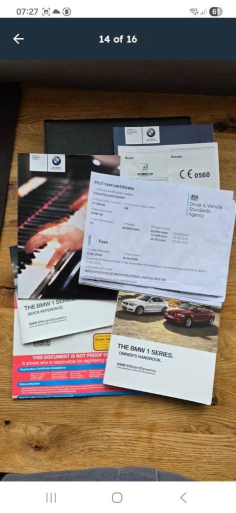 Mot 16 September 2026 with no advisories comes with 2 remote keys and bmw book pack.