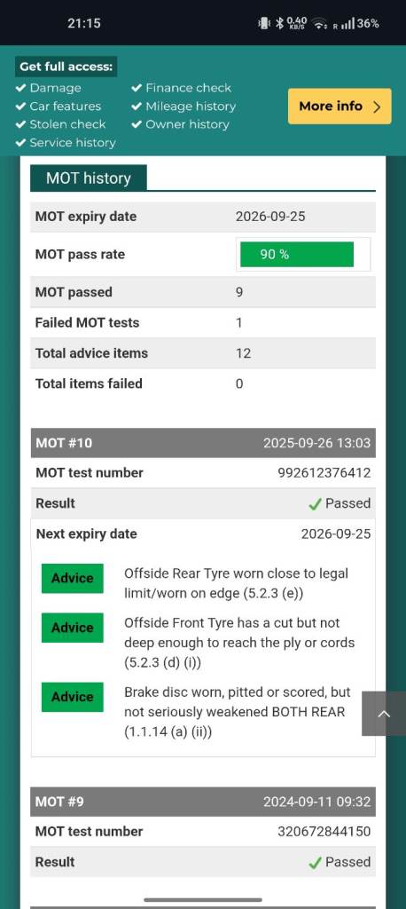 Buy the full report for guaranteed data accuracy, outstanding finance, valuation, milage check & VIN match for £9.99 (normally £19.99)