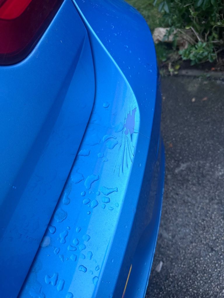 Smooth bodywork with clean lines, slight pain scuff on the back right, picture attached, that’s the only issue.