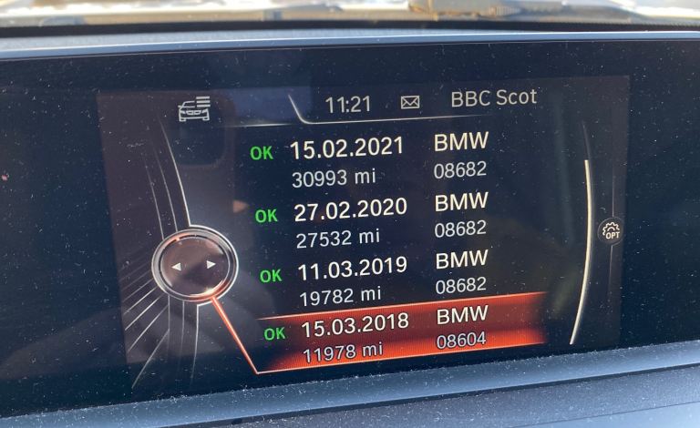 • Partial BMW digital service history (visible in iDrive)