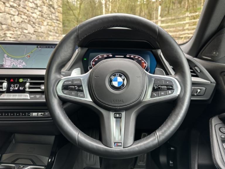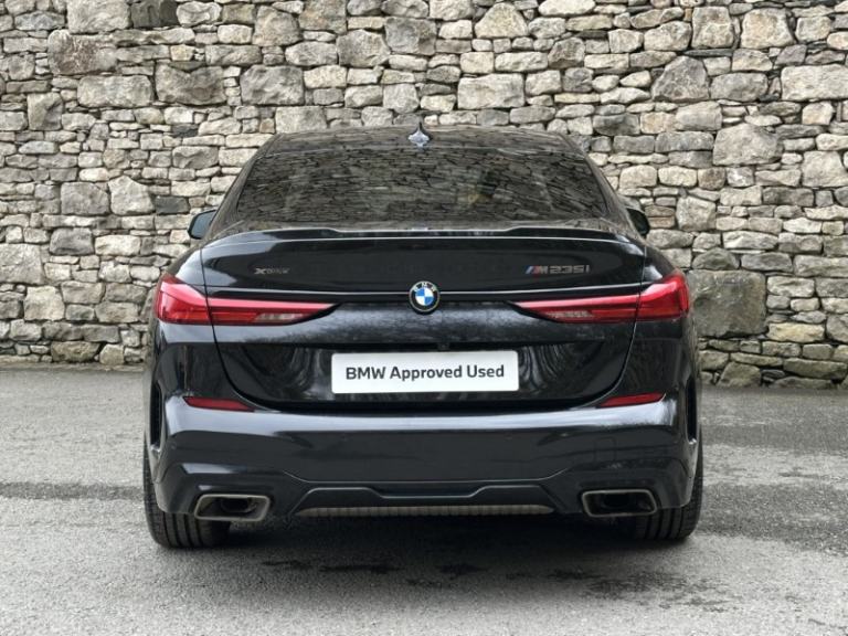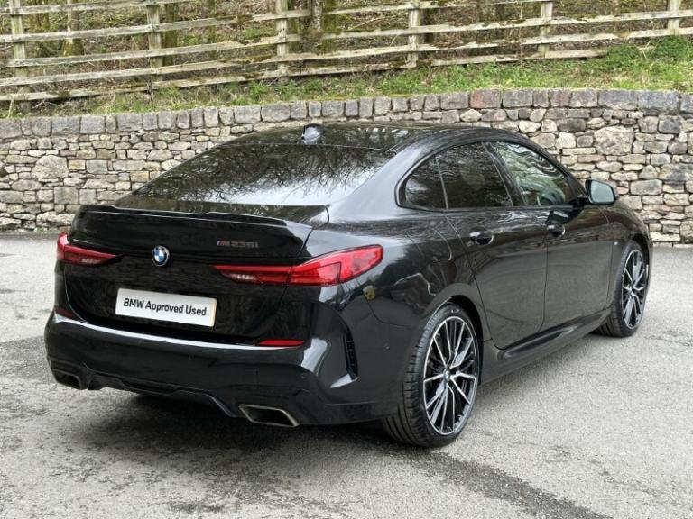 Enjoy blistering performance, advanced tech and luxurious comfort with this stunning Approved Used one previous owner BMW M235i xDrive Gran Coupe, presented in the stealthy Black Sapphire Metallic, with an interior wrapped in exquisite Black Dakota leather with perforation upholstery. Under the bonnet, the potent 2.0-litre turbocharged petrol engine surges with 309 hp, across all four wheels (xDrive), propelling you from 0 to 60?mph in just 4.9 ?seconds ensuring the perfect balance of power, poise and refined everyday usability. During preparation, this BMW has been meticulously cared for, receiving four new tyres, alongside undergoing our comprehensive AUC Vehicle Check & Road Test for enhanced peace of mind. The M235i Pro Pack heightens the experience and fitted distinctive M Sport Seat Belts, Sun Protection Glass and striking 19'' Double-Spoke Style 552 M Alloy Wheels with M Sport Brakes with Blue Callipers that command attention on every road. Inside, Front Heated M Sport Seats offer supreme comfort and sporting intent, complemented by the welcoming glow of Illuminated Boston Interior Trim. As well as this, both the Heated Steering Wheel is more than a luxury! Technology is seamlessly integrated with Live Cockpit Pro, displayed across two crisp digital displays, which all work together to deliver intelligent driver support and immersive digital clarity for a truly connected experience. Active Guard Plus offers optimum safety during monotonous or complex driving situations, while Park Distance Control makes tight manoeuvres effortless. Completing the premium experience is the Harman Kardon Surround Sound System, which immerses you in hi-fidelity audio. Finally the desirable Panoramic Glass Sunroof, creating a sense of space and fills the cabin with natural light and when open, plenty of fresh air. Perfect for the Summer months ahead. Lloyd BMW South Lakes invites you to experience this example of BMW innovation and ingenuity first-hand through a test drive.