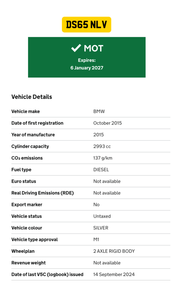This vehicle has not been reported stolen, scrapped, exported or flagged as unroadworthy.