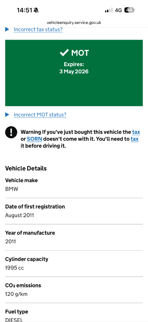 This vehicle has not been reported stolen, scrapped, exported or flagged as unroadworthy.