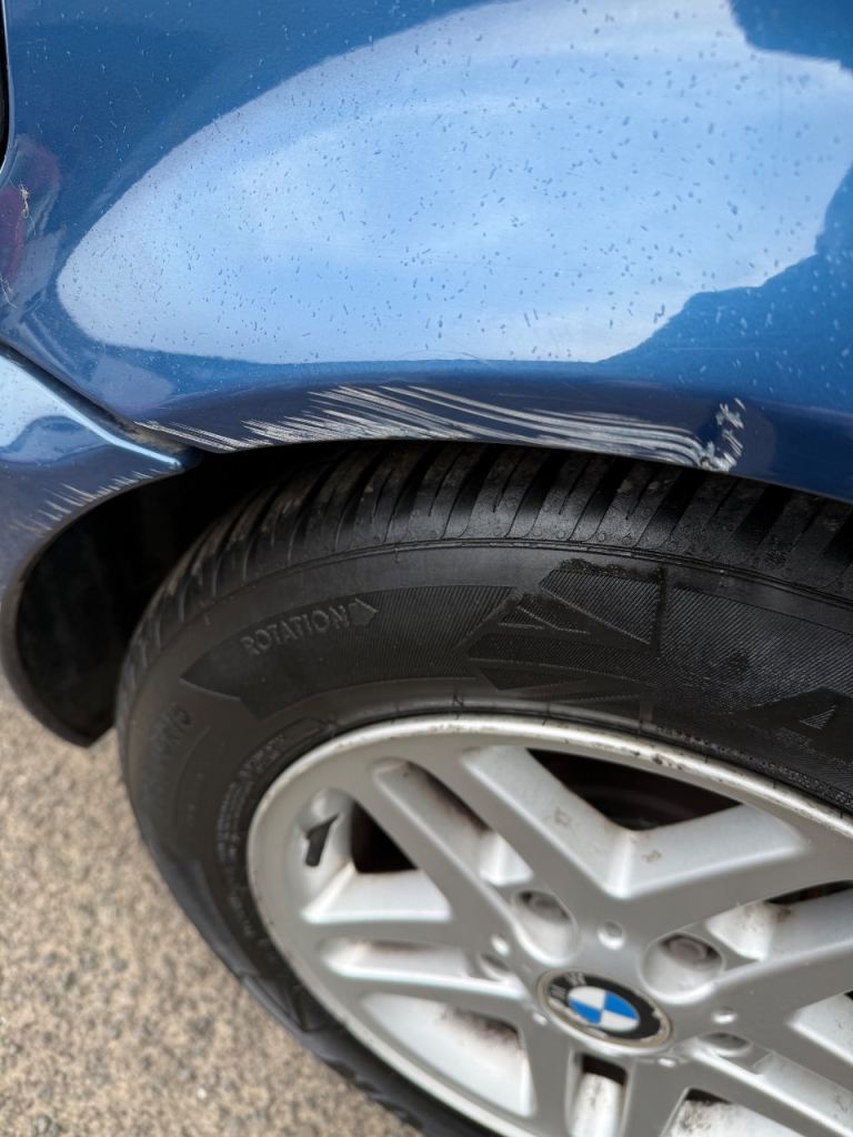 Drivers side rear wheel arch has a slight scrape, passengers front door has a slight dent but hasn’t damaged the paint.
