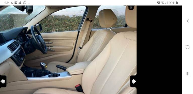 This 2012 BMW 3 Series dynamic efficiency has beautiful cream interior leather & carpet. Has a sunroof which is rare. Super clean car for its age. Well maintained. Long M.O.T