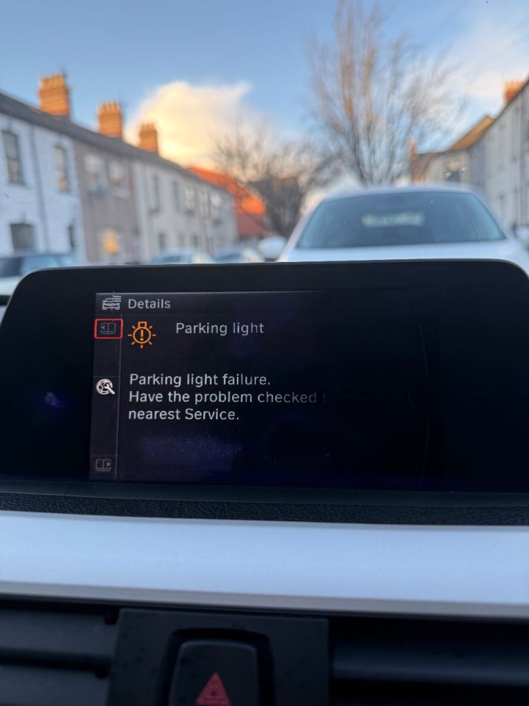 • Two error messages on the dashboard: Parking light & Brake light (see pictures)