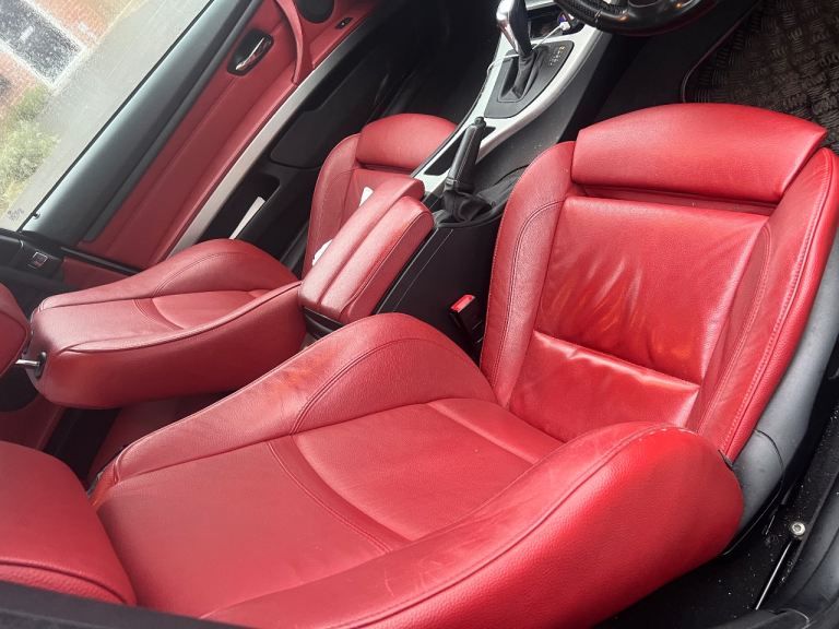 Premium M Sport interior with red leather heated supportive sports seats, high-quality trim, and a driver-focused cockpit that makes every journey enjoyable.