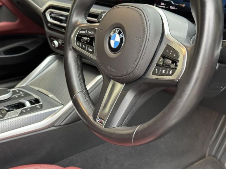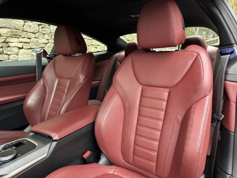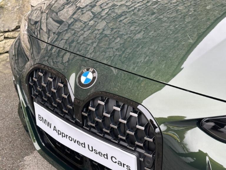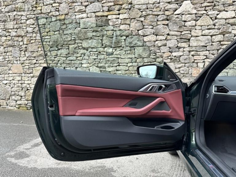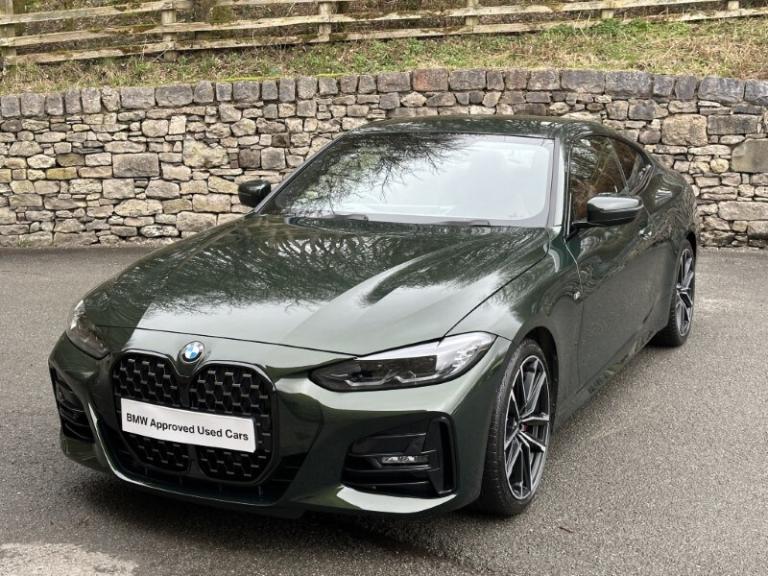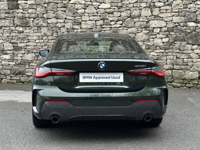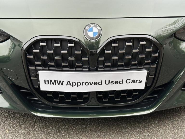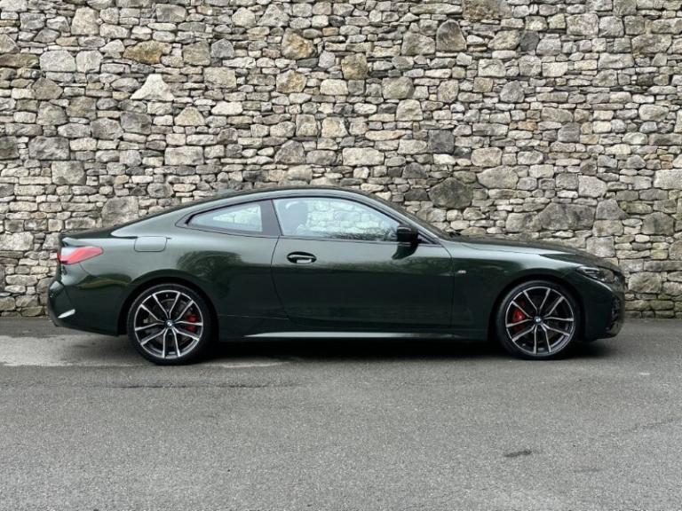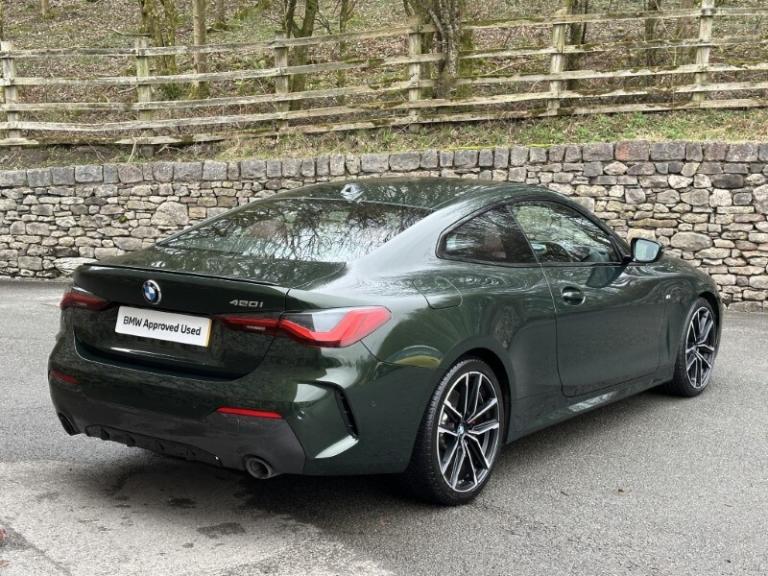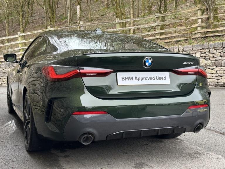 Here at Lloyd BMW South Lakes, we are delighted to welcome this stunning one previous owner BMW 420i M Sport Coupe finished in Sanremo Green Metallic paint with Tacora Red with Black Contrast Stitching upholstery. It also comes with a full-service history as well as a balance of manufacturers warranty of 12 months. During the preparation process we have also fit two new tyres to this 4 Series. Powered by a 2.0L petrol engine and paired with an 8-speed automatic transmission, it delivers a respectable 181bhp and 290Nm of torque, offering a powerful yet smooth driving experience. The M Sport Styling enhances the sporty appeal of this 4 Series with sportier front and rear bumpers, M Sport Spoiler and striking 19'' 797 M Double-spoke Bicolour Jet Black Alloys, and upgraded M Adaptive Suspension, all of which contribute to a more sporty and engaging driving experience. Step inside and enjoy premium comfort and Ambient Lighting setting a sporty atmosphere. Sit down and get comfortable on the Front Heated Seats and dive into the Central Digital Display which comes with all the essential controls and apps you need for a comfortable drive. On-board navigation, paired with Cruise Control ensures a smooth, stress free drive, especially on longer trips. Apple CarPlay provides effortless smartphone integration, letting you enjoy your favourite music, make calls, and check messages, all through the digital display. Enjoy your favourite music through the HIFI Loudspeakers. The rear of the BMW 420i M Sport Coupe comes with a reverse camera with guidelines allowing you to get into tighter spots with ease. Come visit Lloyd South Lakes BMW to test drive this beautiful and Sanremo Green Metallic 420i M Sport Coupe.