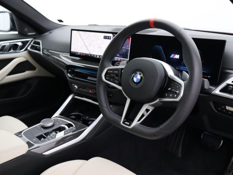 Here at Lloyd BMW North Tyneside, we are delighted to welcome this stunning M440i xDrive Gran Coupe finished in Fire Red paint with Ivory White Black Extended Merino Leather upholstery. It comes with a BMW manufacturers warranty until September 2028 . Powered by a 3.0-litre petrol engine paired with a hybrid motor producing 392bhp alongside 540nm of torque and enhanced with the BMW xDrive all wheel drive system which makes this BMW M440i Gran Coupe xDrive powerful, comfortable and smooth in any conditions. This BMW M440i Gran Coupe sits on 20'' Individual aerodynamic bicolour spoke alloy wheels with M sport suspension and M sport brakes with high gloss red calipers, finished off with sportier front and back bumpers and M sport lip spoiler completing the sporty design of this BMW. The front of BMW M440i xDrive Gran Coupe comes with bright LED headlights creating clear and visible roads on all journeys you take. Moving into the inside to a carbon fibre interior, brightened up by the glass sunroof, adding a touch of true bmw inspiration and combined with the M sport styling finishing off the sporty styling . You'll enjoy heated front seats with memory settings, while you wrap your hands around the heated steering wheel making sure comfort is key for your journey. Dive into the digital display which comes with all the essential apps you need for a confident drive. On board navigation with realtime traffic information, makes longer journeys more simple paired with easy to use cruise control. Integrate your phone through apple car play and enjoy your favourite music through the premium sounds of Harman Kardon surround sound system. Finishing off with the rear of the BMW M440I coming with a rear camera making sure you can get into tighter spaces with ease. If you would like a Powerful, luxury and tech packed BMW, this BMW M440i xDrive Gran Coupe is the one for you. Embark on your thrilling test drive today at Lloyd North Tyneside BMW.
