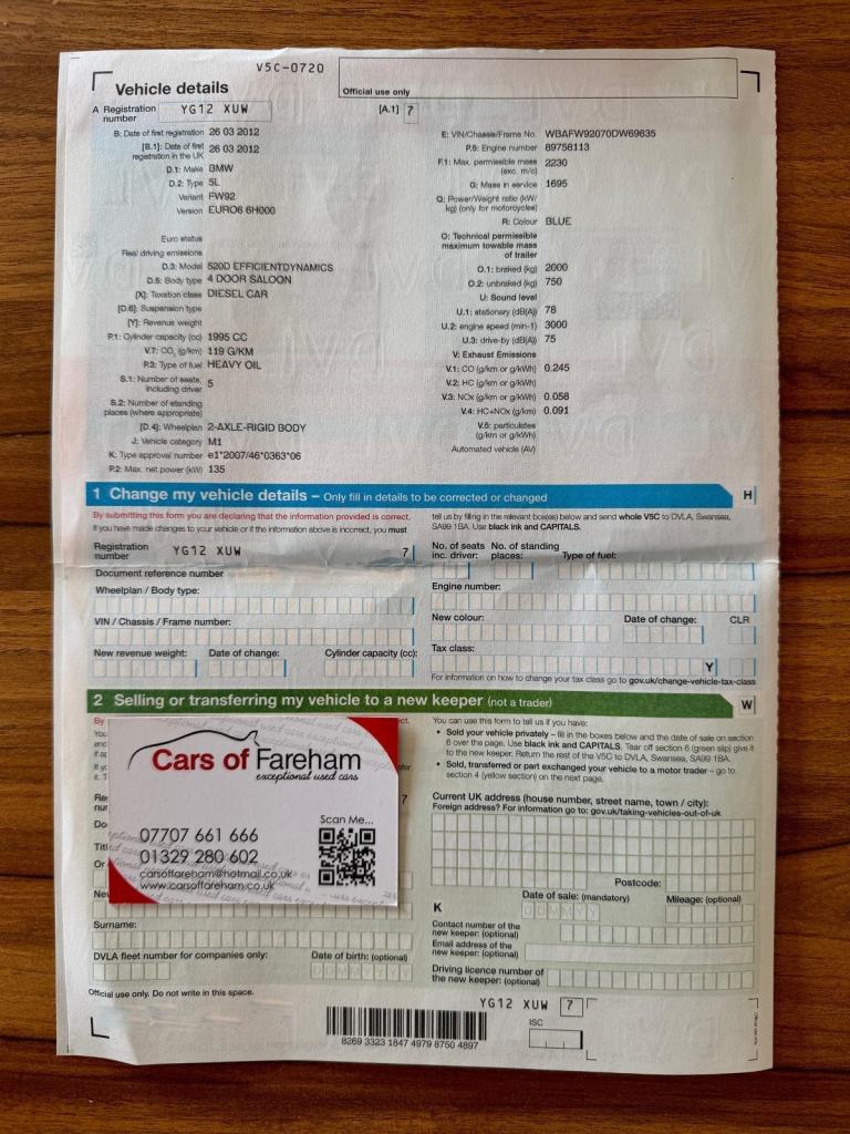 - Original number plateAdvisoryDifferent number plates are commonplace. Ensure the number plates on the car match the V5C documentation. Be sure of what number plate comes with the car you are buying.