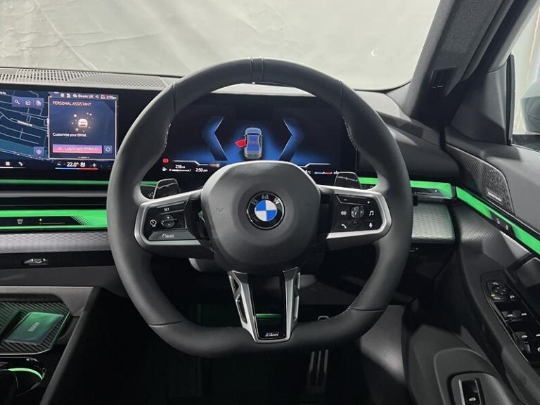 BMW 5 SERIES 520i M Sport Pro 4dr AutoCape York Green Metallic,Perforated and Quilted Veganza in Black,20'' M Aero 939M Bicolour Black Grey Alloys,Comfort Pack, Electric Bootlid, Ambient Lighting, Sun Protection Glass, Front Heated Seats, Driving Assistant, Parking Assistant, Adaptive LED Headlights, Harman Kardon Speakers