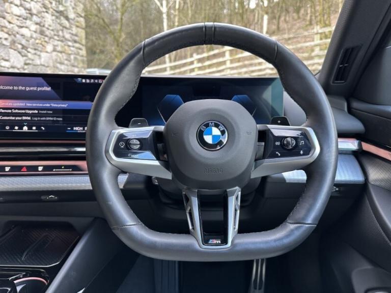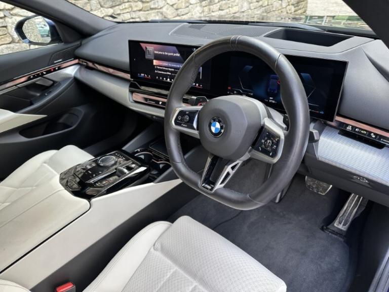 This BMW 5 Series is an current demonstrator here at Lloyd BMW South Lakes, it has been meticulously maintained by our expert technicians, is specified to absolute perfection and comes with BMWs comprehensive manufacturer protection under the Approved Used Programme, plus the remainder of the vehicles warranty until March 2028. This BMW 520i M Sport Saloon is the embodiment of executive elegance, finished in timeless Tanzanite Blue Metallic and accentuated by dynamic M Sport styling. Its sleek, low-slung silhouette is enhanced by 19'' M 936 M Aero Bicolour Alloy Wheels, M Sport Brakes with Blue Calipers and additional Sun Protection Glass. Inside, Perforated and Quilted Veganza in Smoke White upholstery and Dark Sliver M Accent interior Trim and sweeping Ambient Lighting, creating a purposeful, driver-focused environment. This particular 5 Series comes with the additional Technology Plus & Comfort Plus Packs, that's just under 7k worth of options! Front & Rear Heated Seats and a Heated Steering Wheel ensure premium comfort, the Harman Kardon Sound System immerses you in high-fidelity audio, while Storage for Wireless Charging keeps your smartphone powered without the clutter of cables. This BMW is packed with advanced tech, including the Driving Assistant Professional and Active Guard, which offers a suite of intelligent safety technologies, including lane-keeping assistance and blind-spot monitoring, providing extra peace of mind on every journey. The Parking Assistant Professional makes parking effortless, Adaptive LED Headlights illuminate dark roads with striking precision and Live Cockpit Plus, displayed on a stunning Widescreen Display, seamlessly integrates navigation, vehicle information and entertainment for an intuitive driving experience. The Travel and Comfort System provides a secure attachment point and a USB-C charging port on the back of each front seat, allowing rear passengers to easily install various genuine BMW accessories to enhance their journey, Comfort Access allows you to unlock and start your vehicle without the need to remove the key from your pocket and the Electric Tailgate means no more dirty hands when opening and closing the boot. Lloyd BMW South Lakes invites you to experience the thrill first-hand through a test drive. With 33 retailers across the North of England and the Scottish borders, you can collect your BMW from any Lloyd Motor Group retailer.