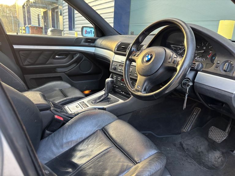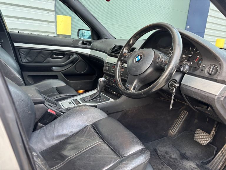 RARE E39 BMW 525I M SPORT 2.5 PETROL AUTOMATIC TOURING 2003 PLATE FULL BLACK LEATHER INTERIOR 17INCH M SPORT ALLOYS PARKING SENSORS C/LOCKING CASSETTE PLAYER E/WINDOWS E/MIRRORS POWER STEERING AIR BAGS AIR CON 140,000 MILES SERVICE HISTORY