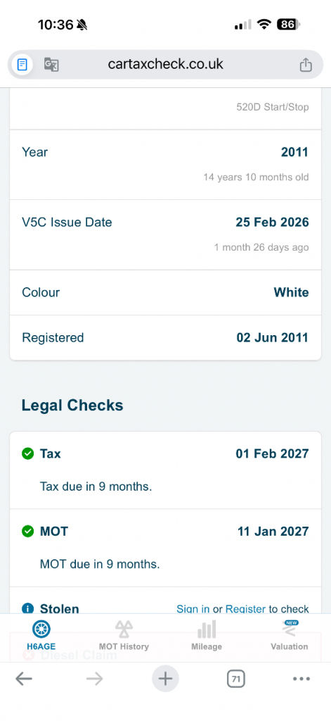 This vehicle has not been reported stolen, scrapped, exported or flagged as unroadworthy.