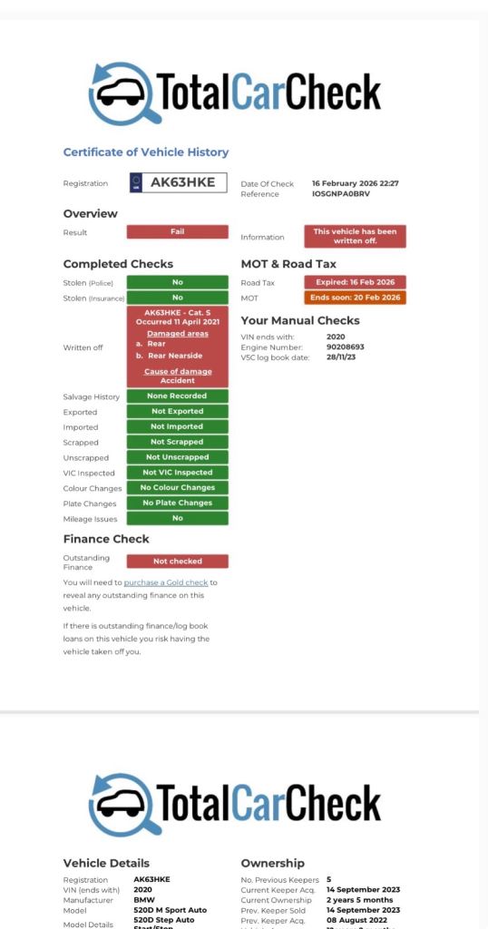 Our vehicle history check is provided for guidance only. Please check all the details with the seller before purchasing