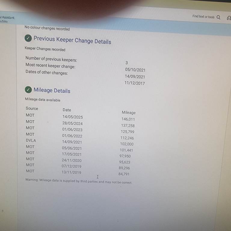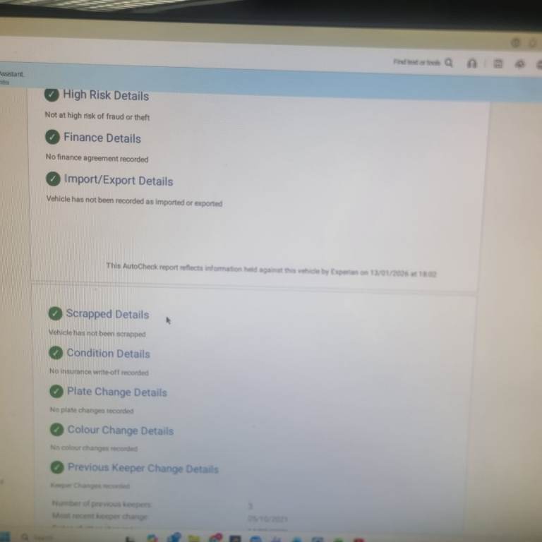 Our vehicle history check is provided for guidance only. Please check all the details with the seller before purchasing