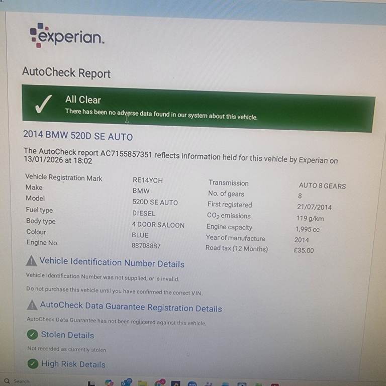 This vehicle has not been reported stolen, scrapped, exported or flagged as unroadworthy.