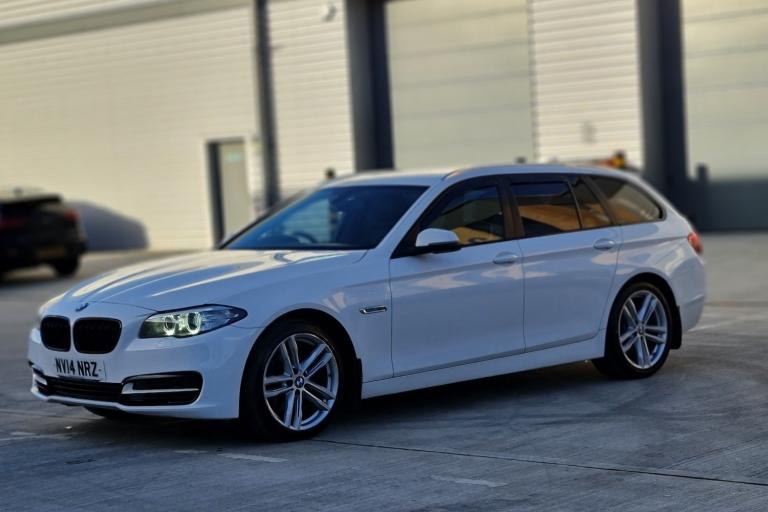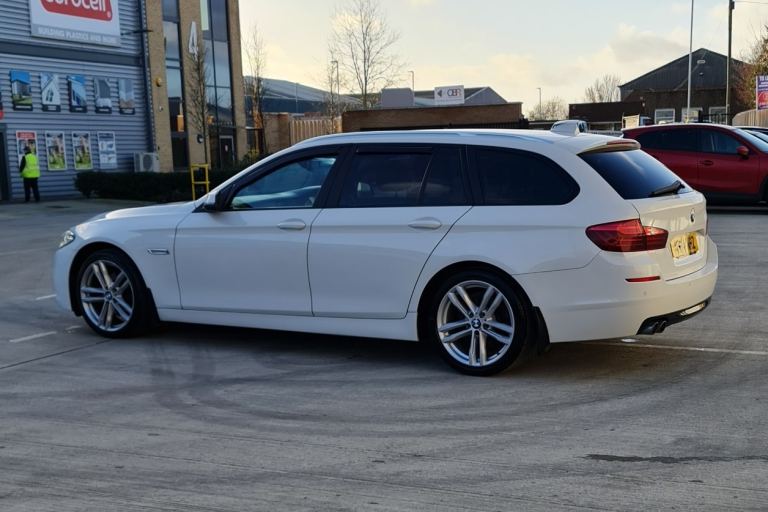 BMW 5 SERIES SE 2.0 520d SE TURING ESTATE 5dr Diesel Auto Euro 6 S/S 190 P/S. Extensive S/H. Shall come with Long MOT. Full Leather, 19 inch double spoke wheels, NAV, Professional Media. UK WIDE DELIVERY AVAILABLE & ANY P/X WELCOME--Stunning in White with a high Spec Including: LEATHER INTERIOR, NAV COMPUTER STEREO, BT, AIR CON, 19"" ALLOYS + MORE--PRICED TO SELL--TRADE PRICE
