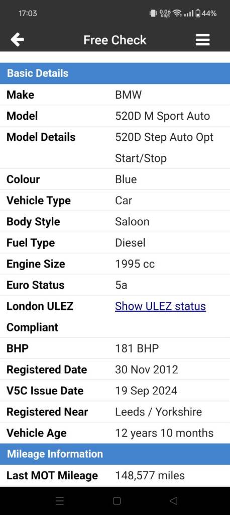 Our vehicle history check is provided for guidance only. Please check all the details with the seller before purchasing
