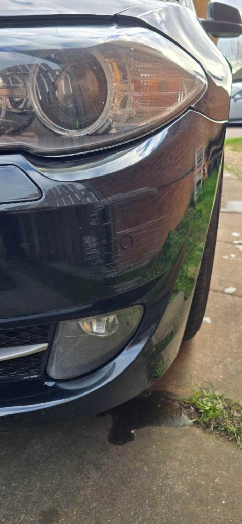 Small dent on driver’s door and small scratch on front bumper corner (see pictures).