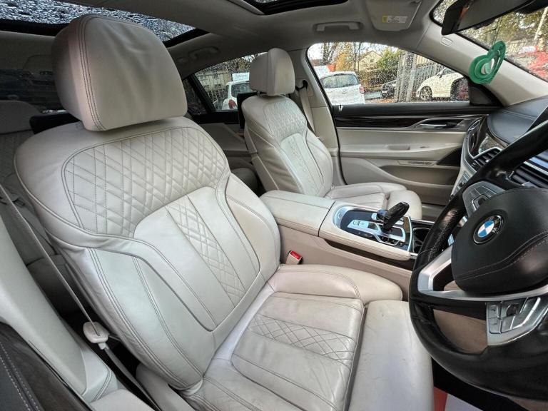 HERE AT JOHNNY AUTOS WE ARE DELIGHTED TO PRESENT THIS STUNNING BMW 730 LD 3.0 DIESEL AUTOMATIC 4 DOOR IN SOPHISTO GREY XIRALLIC WITH IVORY WHITE NAPPA LEATHER INTERIOR. FACTORY OPTIONS INCLUDE SKY LOUNGE PANORAMIC SUNROOF, FRONT AND REAR PARKING SENSORS WITH SURROUND VIEW CAMERA, PARK ASSIST, ELECTRIC HEATED SEATS, FRONT AND REAR MASSAGE SEATS, 20"" V-SPOKE BICOLOUR ALLOY WHEELS, HARMON KARDON SOUND SYSTEM WITH 16 SPEAKERS, SOFT CLOSE DOORS, REAR BLINDS, ACTIVE SUSPENSION, ELECTRIC FOLDING MIRRORS, MEMORY LEATHER TRIMMED MULTIFUNCTION STEERING WHEEL, 4 ZONE CLIMATE CONTROL, BMW DISPLAY KEY, 10.25"" COLOUR DISPLAY, REAR SEAT COMFORT PACKAGE WITH REAR SEAT ENTERTAINMENT, EXECUTIVE PACKAGE, ADAPTIVE LED HEADLIGHTS, HEAD UP DISPLAY, TV FUNCTION, 20 GB HD MEMORY, CD RADIO WITH DAB, POWER TAILGATE, ENHANCED BLUETOOTH WITH WIRELESS CHARGING, CRUISE CONTROL WITH SPEED LIMITER, DRIVE PERFORMANCE CONTROL, HIGH BEAM ASSISTANT, VOICE CONTROL, iDRIVE, AUTO HOLD, ISOFIX AND 2 KEYS. AS AN RAC DEALER WE ENSURE THAT THIS VEHICLE IS SUBJECT TO A FULL MULTI-POINT INSPECTION AND IS ACCOMPANIED BY 12 MONTHS RAC ROADSIDE ASSISTANCE ALONG WITH A COMPLIMENTARY RAC PLATINUM WARRANTY. FULL BMW SERVICE HISTORY + 22 BMW SERVICES RECORDED + LAST SERVICE AT 137,898 MILES ON 10072025 + MOT UNTIL 03112026 + NEW FRONT BRAKE DISCS AND PADS + ULEZ COMPLIANT + EXTENDED WARRANTY OPTIONS AVAILABLE UP TO 36 MONTHS + PHOTO IDENTIFICATION REQUIRED FOR VIEWING AND TEST DRIVES + PART EXCHANGE WELCOME + NATIONWIDE DELIVERY AVAILABLE AT COST + TO ENSURE THE HIGHEST QUALITY OF CUSTOMER SERVICE VIEWING IS BY APPOINTMENT ONLY + CALL US ON 0116 507 4142 OR WHATSAPP [Phone number removed] FOR ANY QUERIES OR INFORMATION + ONLY CASHBANK TRANSFERS ACCEPTED + OPEN 7 DAYS A WEEK + VISIT OUR WEBSITE FOR OUR FULL STOCKLIST: https:[Website URL removed]