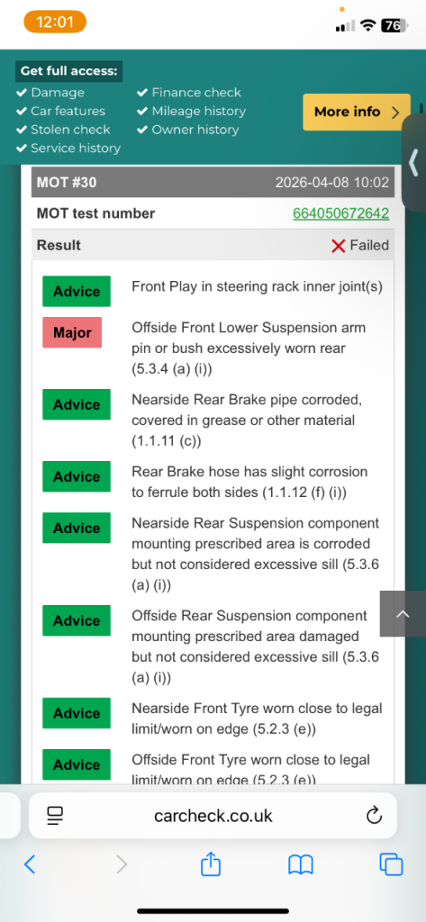 BMW e46 saloon MOT until 22nd, 4 DAYS!! will pass with 2 new ball joints about £12-£13 each and headlight aim to low other than that she’s mint I picked her up few days ago with the mindset to do her up Ive put driveshafts in her sorted out the fuel wires and fuel pump Ive got receipts