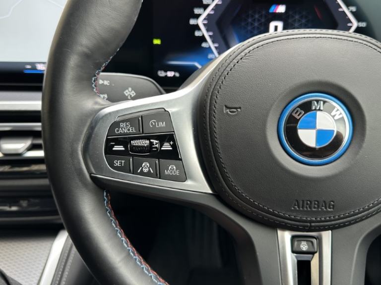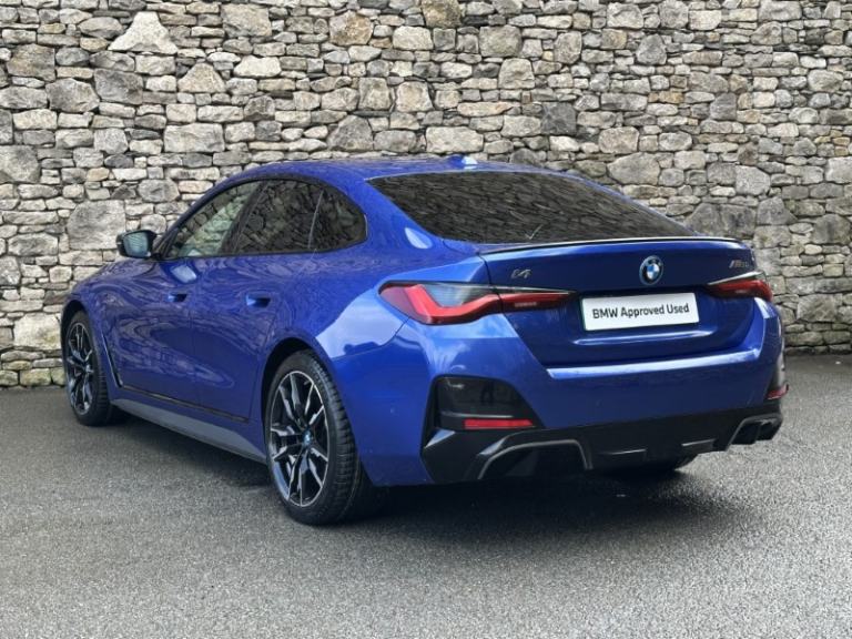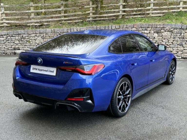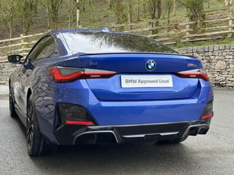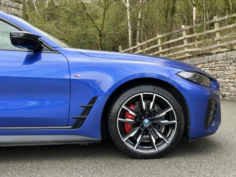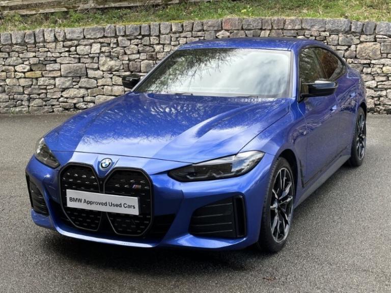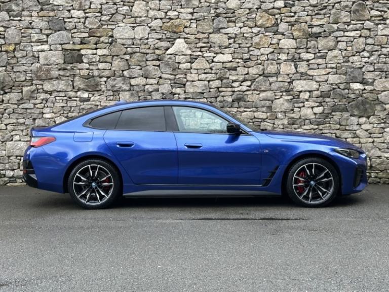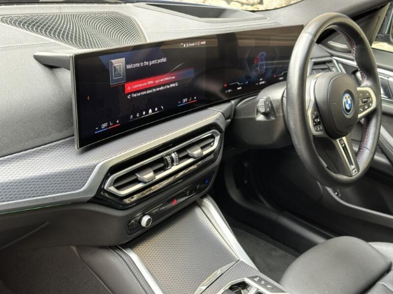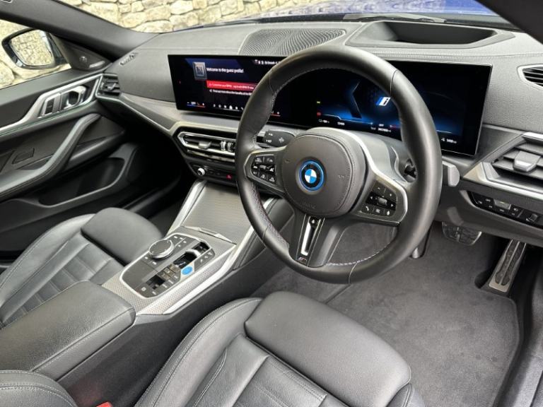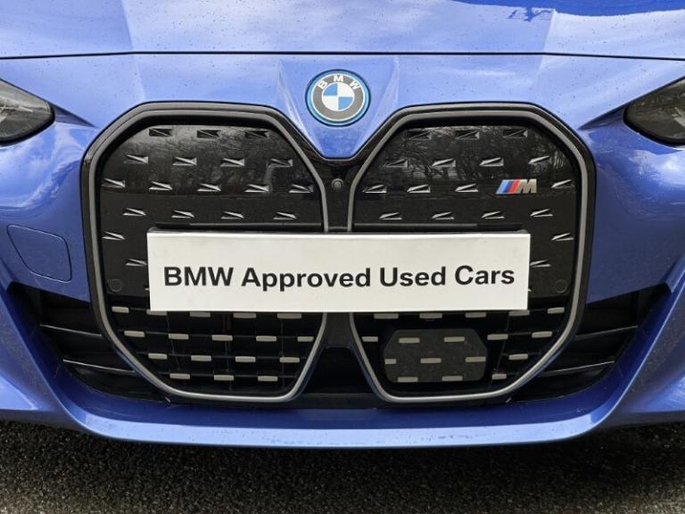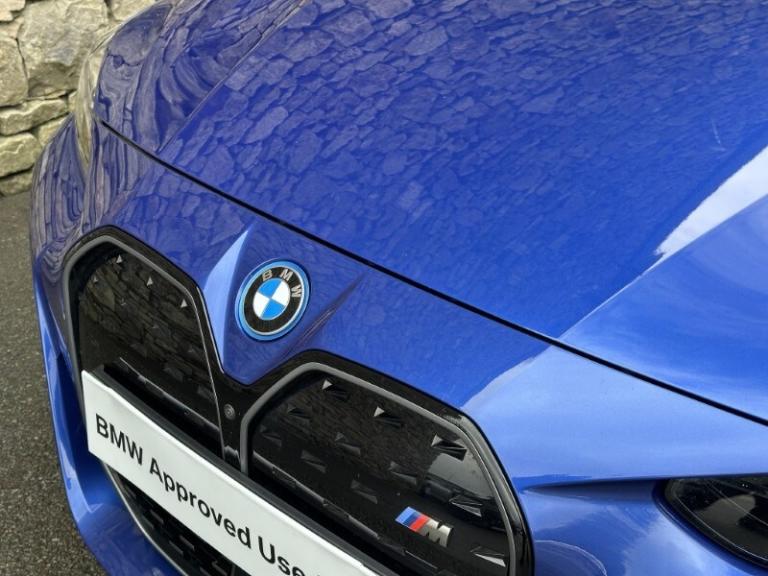 Here at Lloyd BMW South Lakes, we are delighted to welcome this BMW I4 400kW M50 Coupe finished in Portimao Blue Metallic paint with a Black with Grey Contrast Stitching Vernasca Upholstery. It comes with a balance of manufacturer's warranty of 12 months. Sitting on a set of 19'' 861 M Double Spoke Alloy Wheels, with added M Sport brakes with vibrant blue calipers, sporty front and back bumpers, iconic BMW kidney grill completing the sporty design. The BMW i4 is a fully electric vehicle delivering an impressive 536bhp and a remarkable range of up to 250 miles on a single charge. Designed for comfort and performance, it ensures every journey is smooth, relaxing, and stress free. Sit down and get comfortable on the Electric Memory Heated Front Sport Seats and wrap your hands around the Heated Steering Wheel easily managed through a sleek, widescreen central digital display. The digital display has all the essential apps you need for a relaxing tech-filled drive, on board navigation with real time traffic information paired with easy to use Cruise Control from the M Sport steering wheel makes longer journeys stress free. Integrate your phone through Apple Carplay and keep up to date with on coming calls and messages, while enjoying your favourite music through Harman Kardon Surround Sound speakers. The rear of the BMW i4 M50 comes with an Electric Bootlid and Rear Camera so you can get into tight spaces with ease and loading your shopping is a breeze. Come visit Lloyd South Lakes BMW to test drive this beautiful Portimao Blue Metallic BMW i4 M50.