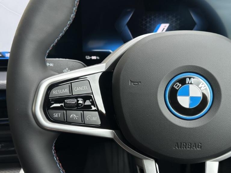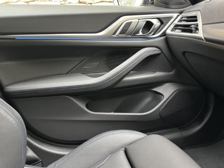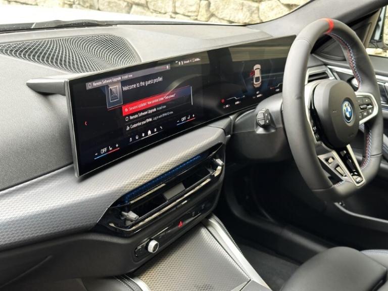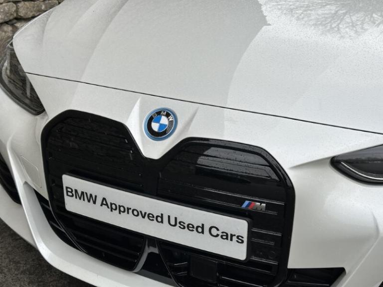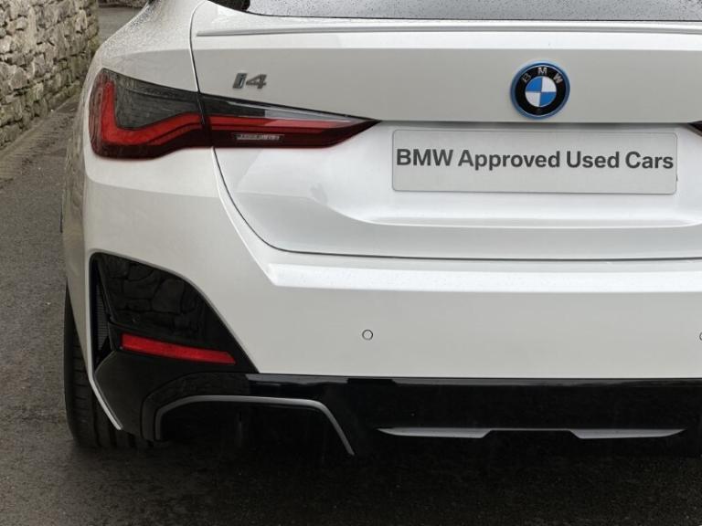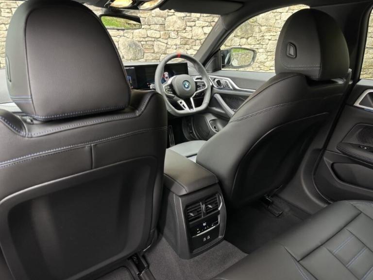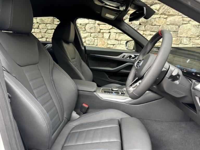 BMW I4 400kW M50 Gran Coupe Mineral White Metallic, Black with Blue Stitching Vernasca Leather, Driver Seat Backrest Width Adjustment, Front Heated Seats, Sun Protection Glass, Folding Wing Mirrors, Parking Assistant, Cruise Control, Electric Memory Seats, Ambient Lighting, M Adaptive Suspension