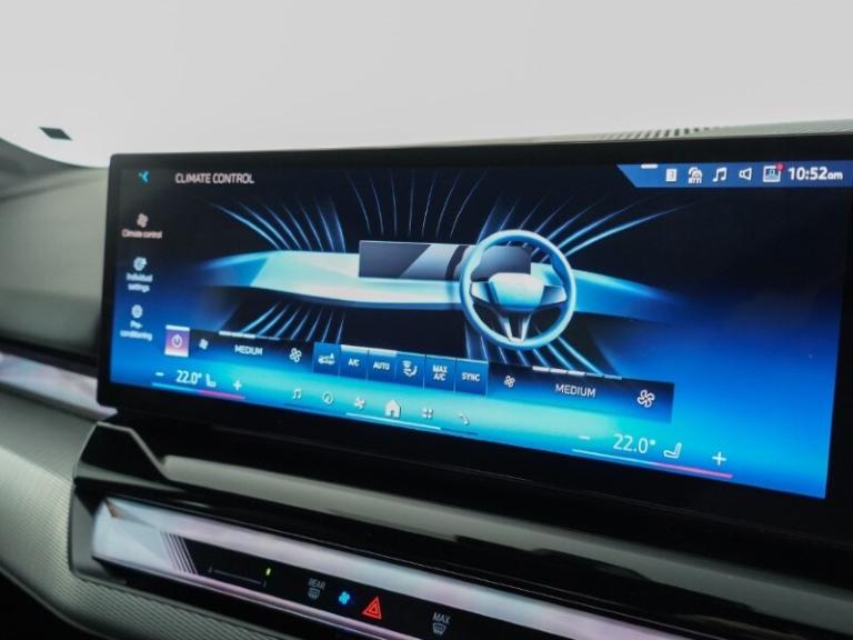 BMW i5 M Sport Electric Power, Dynamic Design,Finished in striking Oxide Grey with a luxurious Black Perforated and Quilted Veganza interior, this BMW i5 M Sport combines cutting-edge electric performance with the signature style and refinement of BMW M. With sporty M exterior and interior detailing, it s designed to impress at every angle.,Driving is effortless yet thrilling. The M Sport suspension keeps the car composed and agile, while the 19'' M light alloy wheels and M Sport brakes with dark blue calipers deliver both style and confidence on the road. BMW s electric drivetrain is paired with eDrive Exterior Sound and BMW IconicSounds Electric for a futuristic, immersive experience.,Inside, comfort meets technology. Heated front seats, front lumbar support, M Sport leather steering wheel, and ambient lighting make every journey enjoyable. The Dark Silver M accent with Aluminium Rhombicle trim adds a premium, modern finish.,Technology is seamlessly integrated with Connected Package Professional, BMW Digital Key, Live Cockpit Pro, and smartphone integration. Wireless charging and a personal eSIM keep you connected, while Harman Kardon surround sound turns every drive into a rich audio experience.,Safety and convenience are built-in. Adaptive LED headlights, Driving Assistant, Active Guard, and Parking Assistant work together to give confidence and control on every journey. Practical touches such as tyre sensors, security bolts, and a professional charging cable make ownership easy and stress-free.,This BMW i5 M Sport is a perfect combination of electric efficiency, sporty M driving dynamics, and premium technology, creating a modern EV experience with BMW s unmistakable flair.
