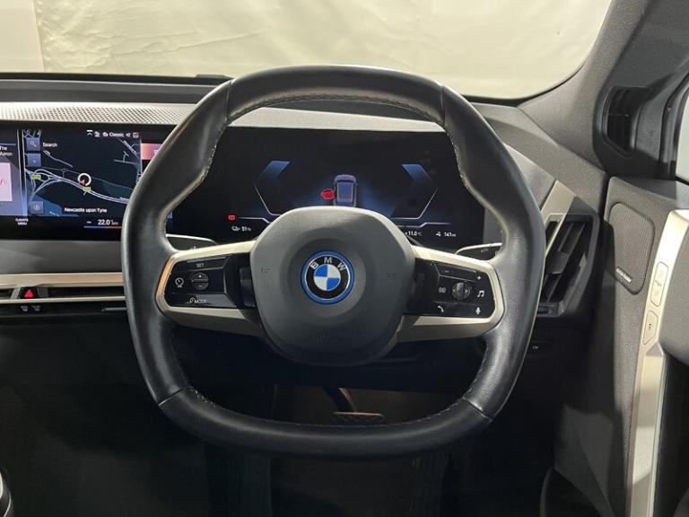 Here at Lloyd Newcastle BMW, we are delighted to welcome this Storm Bay iX xDrive50 M Sport Edition to our range of Approved Used cars. First registered in October 2022, it comes with a full service history as well as a 12 month warranty. The iX is a Sports Activity Vehicle ready to change the face of adventure, powered by 5th Gen BMW eDrive technology and a fully electric all-wheel drive system. Being fully electric this iX comes with up to 360 miles range, Offering instant acceleration, smooth and quiet power delivery with 516ps achieving 0-62 in 4.5 seconds. Being able to charge from 10-80% in around 35 minutes. This iX comes with some amazing features including a useful towbar, soft close doors and parking assistant professional with 360 camera and memory parking, remembering up to 10 maneuvers! As well as this, Harman Kardon speakers provide immersive sound specially customized for this BMW s interior and you can take pleasure in a sophisticated design that captures your attention while the sky lounge Panoramic Glass Roof opens your adventure up to the best views. With its transparent aesthetic, your view is never compromised. Additionally, both the front and rear heated seats keep you and your passengers warm throughout the colder months!