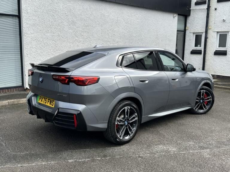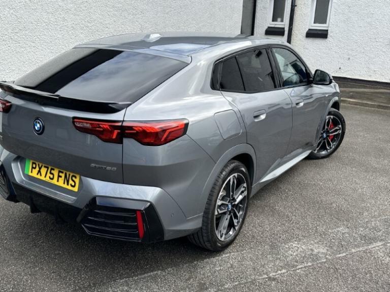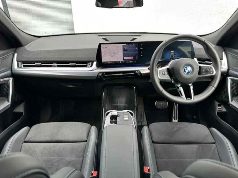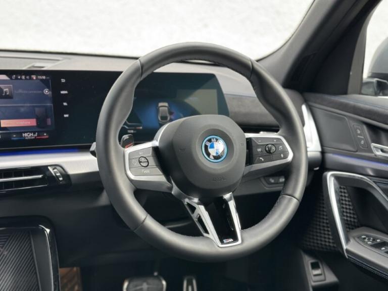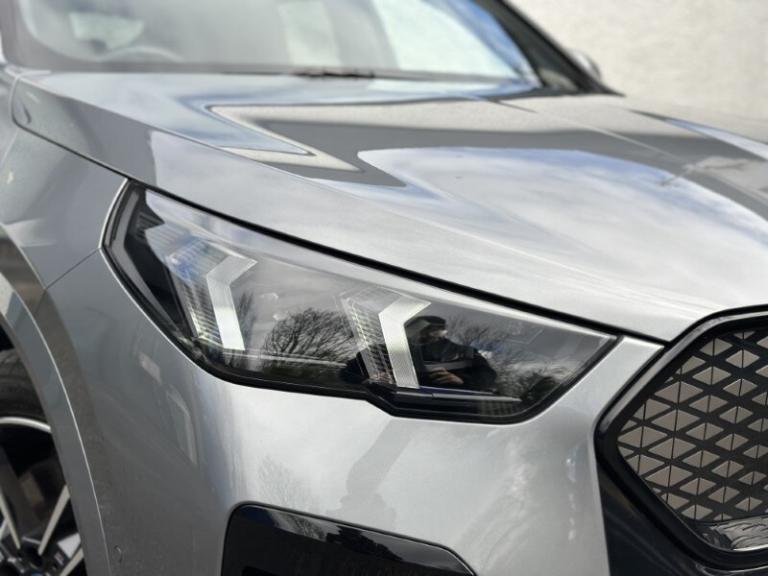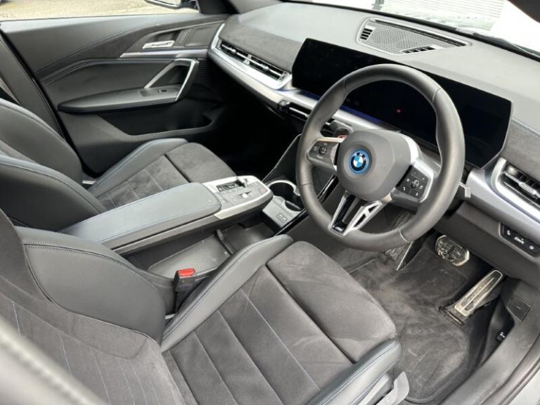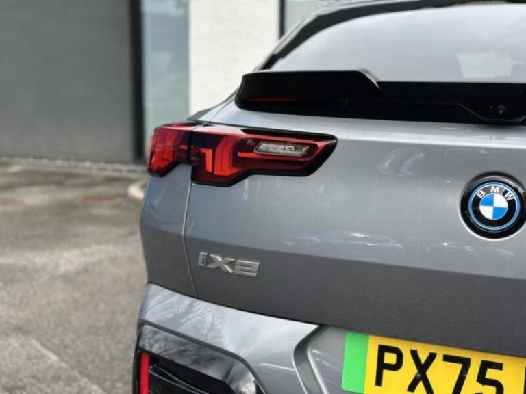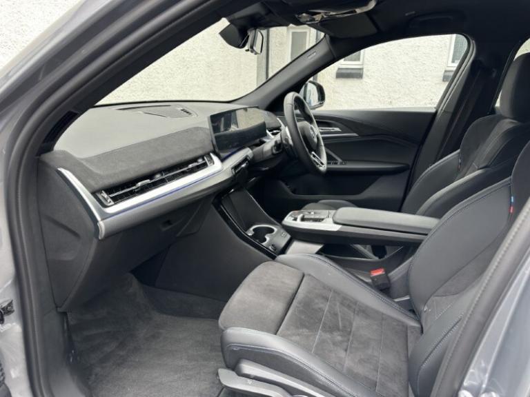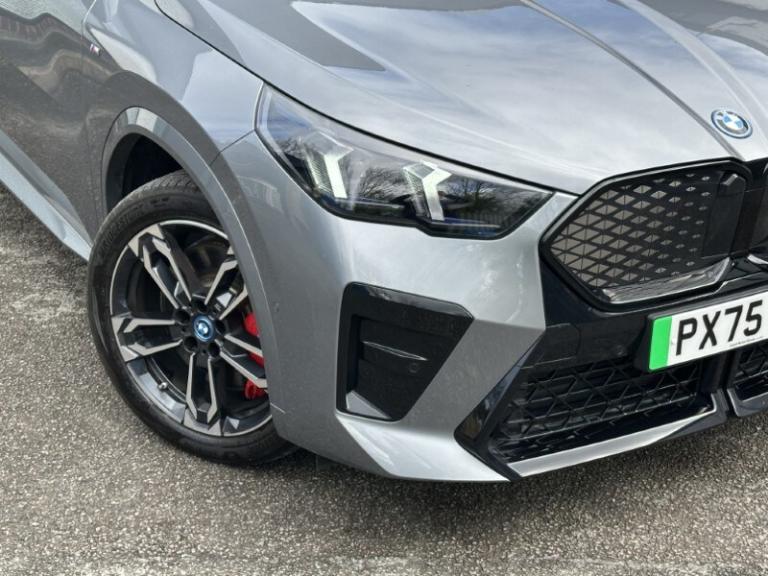 Lloyd BMW Cockermouth are happy to present this exceptional BMW iX2 eDrive20 M Sport finished in Skyscraper Grey paired with the lovely M Alcantara Veganza upholstered interior trim. This is a very well looked after example, benefiting from full BMW service history and a minimum of 12 months warranty. This vehicle has covered just over 3,000 miles and comes with an excellent electric motor producing 204bhp and up to 320 miles of range! The BMW iX2 combines all-electric driving enjoyment with plenty of space and a striking modern design. The interior features an easy to use touchscreen display screen with built-in navigation, Carplay & Android auto as well as showing your very useful reverse camera! It also boasts cruise control, heated front seats and adaptive LEDs which combine with high beam assist! The exterior of this car offers black styling to make it look more sporty and it sits on some great 19'' M light alloy wheels which finish the car off nicely!