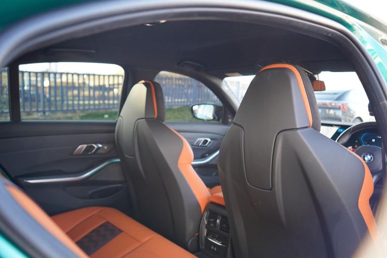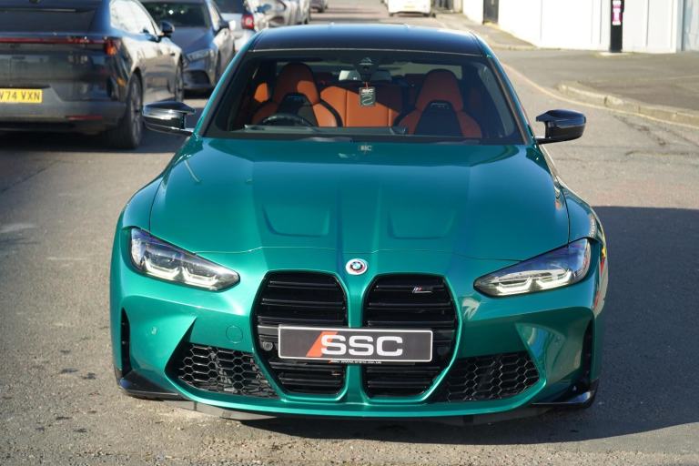 Stunning Facelift M3 Finished In Isle Of Man Green With Kylami Orange and Black Extended Merino Leather Interior. Fantastic Spec Inc: Comfort Pack, Keyless Entry, Electric Boot Lid, Heated M Steering Wheel, Facelift Widescreen Cockpit Curved Display, Head Up Display, Harman Kardon Surround Sound, 19/20" Forged M Alloys, Electric and Heated Seats With Driver Memory, Ambient Lighting, Electric Folding and Auto Dimming Mirrors, Sports Exhaust Selectable, Carbon M Interior Trim, Gloss Black Exterior Trims, Red M Calipers, Adaptive M Suspension, Sun Protection Glass, Galvanic Controls. This M3 Comes With Full Service History.