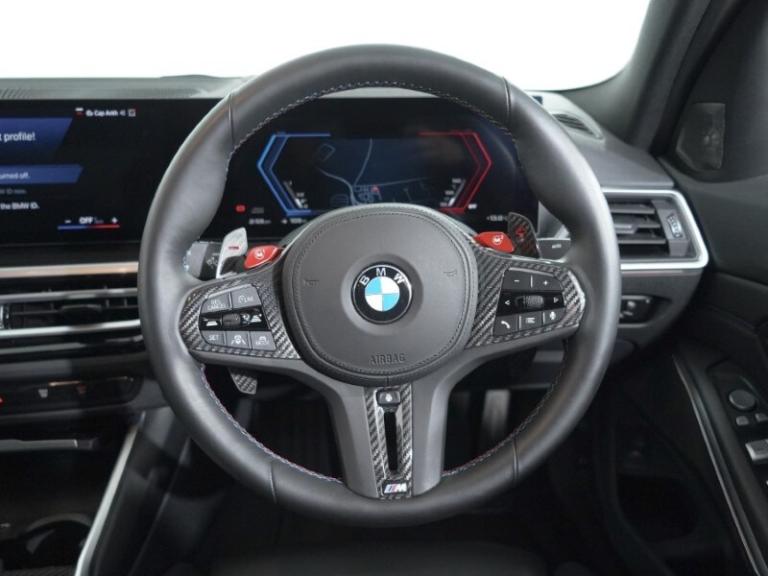 Here at Lloyd Blackpool BMW, we are delighted to welcome this Skyscraper Grey M3 Competition M xDrive Saloon to our range of Approved Used cars. First registered in January 2023, it comes with a full service history as well as a 12 month warranty! Every inch of the new BMW M3 was designed to stand out, from the frameless kidney grille and sharp edges, to the roar of the M TwinPower Turbo inline 6-cylinder petrol engine, which delivers 510hp. This BMW comes with a range of amazing features including the three add on packs worth