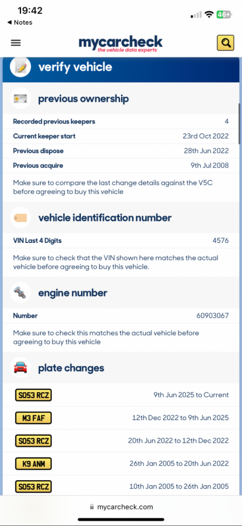 Buy the full report for guaranteed data accuracy, outstanding finance, valuation, milage check & VIN match for £9.99 (normally £19.99)