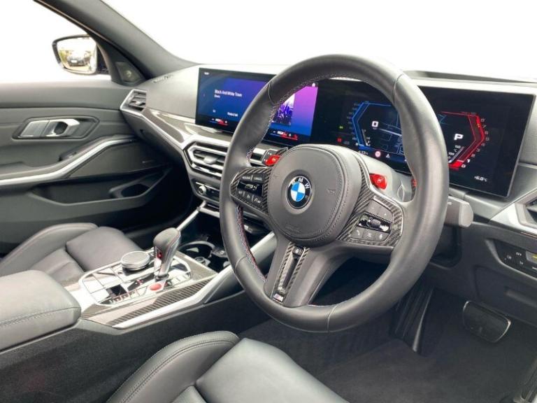 This 2023 BMW M3 xDrive Competition 4dr Step Auto, finished in stunning Skyscraper Grey Metallic Paint, has covered just 11,435 miles and delivers an exceptional blend of performance and everyday usability. Powered by a thrilling 510hp petrol engine producing 650Nm of torque, it accelerates from 0 62mph in just 3.5 seconds and reaches a top speed of 155mph, while still offering a combined WLTP fuel consumption of 27.97 mpg. This Competition model features Black Extended Merino Leather Upholstery and striking 19'' 20'' Jet Black Double-Spoke Style M Forged Alloy Wheels, along with premium equipment including the Harman Kardon Surround Sound System, M Drive Pro, a Heated Steering Wheel and Head Up Display for a truly engaging driving experience. It also benefits from a BMW Warranty running until 6th October 2026 and a Service Plan in place until 5th October 2026, giving you added peace of mind and helping to keep future running costs predictable. With 33 retailers across the north of England and the Scottish borders, you can collect your used car from any Lloyd Motor Group retailer, making your purchase as convenient as possible.