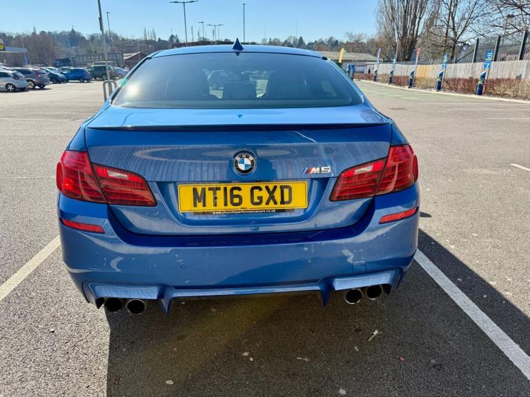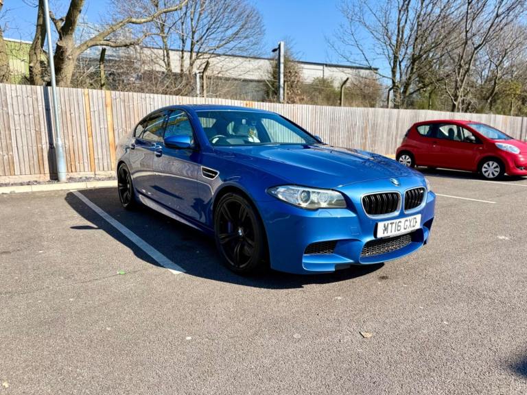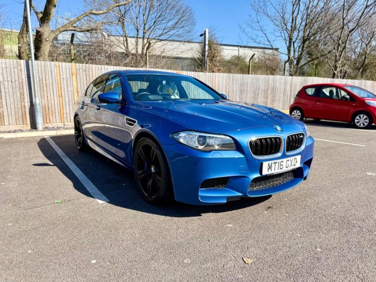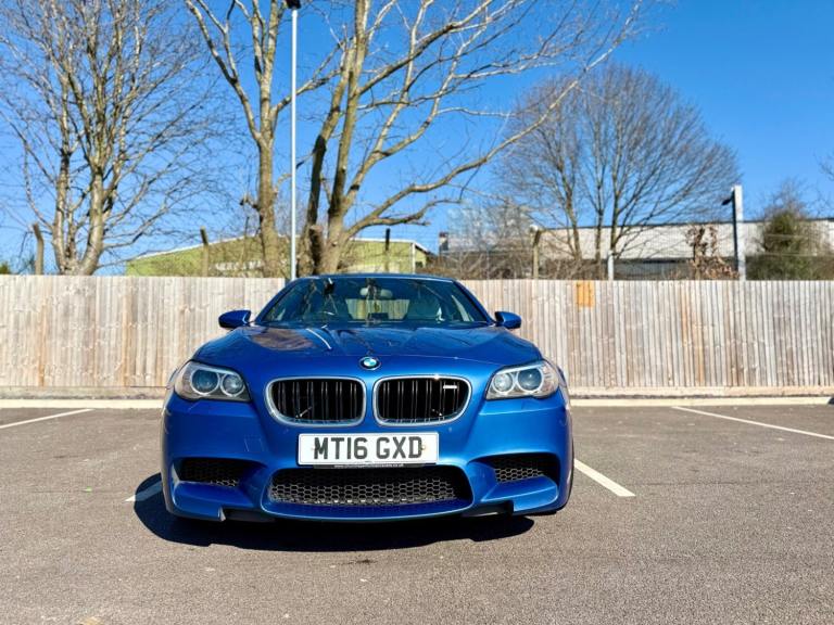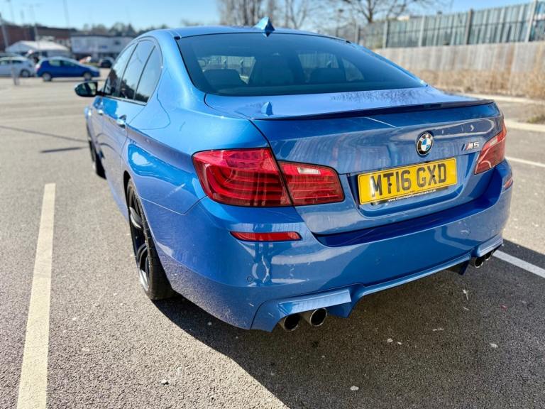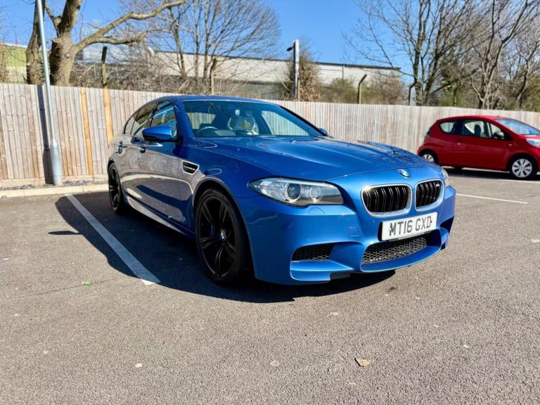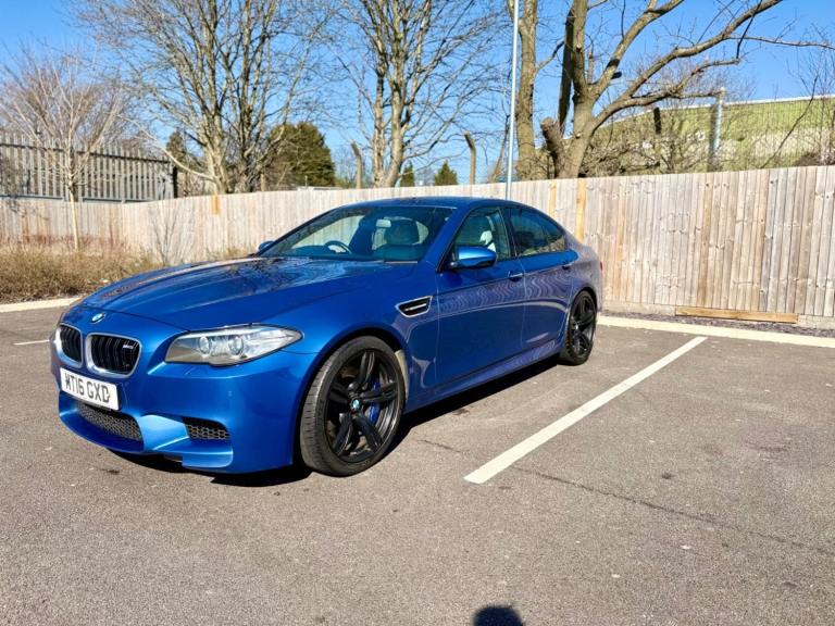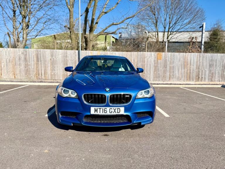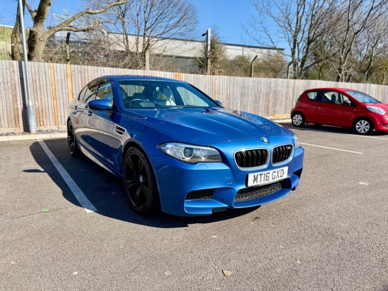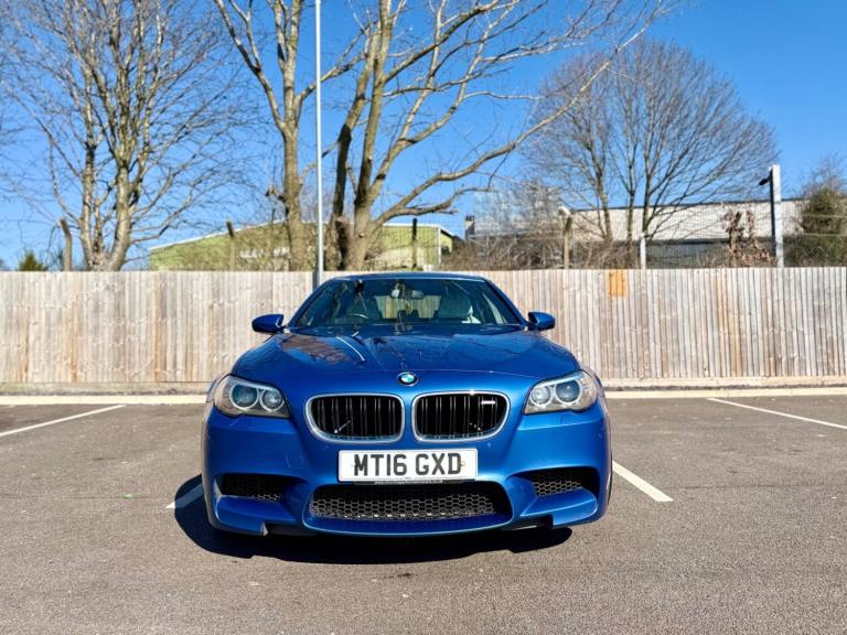 For sale is a very well maintained 2016 BMW M5 in Monte Carlo Blue with 91,625 miles on the clock and a full main dealer service history at BMW. This powerful machine has a 4.4 litres V8 engine and comfortably seats five with four doors for easy access. With an advisory free all clear MOT that expires on 04/02/2026, you can rest assured of its roadworthiness. The last MOT was carried out at Kwik-fit. It was a clean sheet with no comments/ no advisories. The previous MOT was carried out at a BMW main dealership, and recent MOTs pass rate is high! The vehicle has had 3 previous registered keepers, all of whom have taken excellent care of it. The interior is in pristine condition with luxurious leather platinum merino seats and state-of-the-art technology. This BMW M5 offers a perfect blend of performance, luxury, and practicality, making it an ideal choice for anyone in the market for a high-quality performance car. The blue exterior and the platinum merino white interior provides the perfect color combination. Great Spec. Sunroof, Heads Up Display, Cruise Control, Heated Seats, and Lots More! HPI Clear. No Plate Changes in the Past, No outstanding finance, never been stolen or involved in an accident, low number of keepers and long term ownership - the last keeper had it for almost 4 years. Vehicle age is outstanding with the car being under 10 years old. Average yearly mileage is good with average between 8000 and 12000 miles a year. Genuine warranted mileage - no mileage discrepancy has been found. With an estimated value of between £21,196 and £26,495, this car presents a great opportunity for you to own the ultimate driving machine.