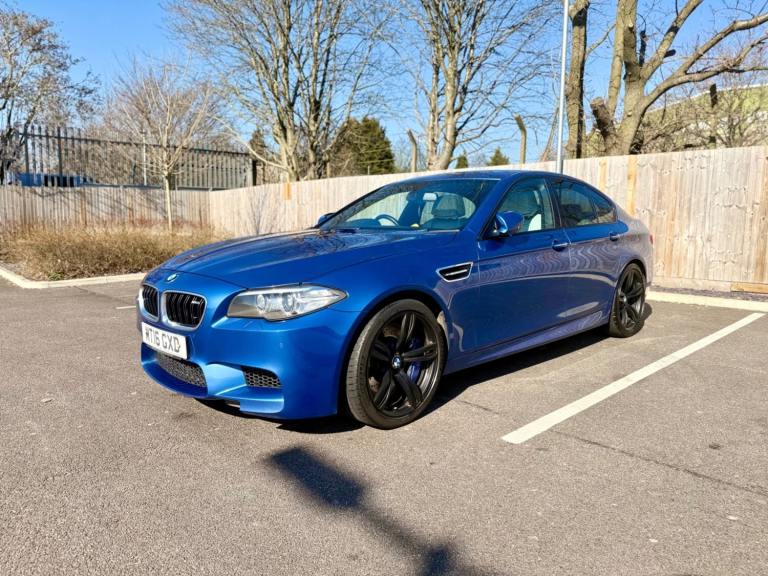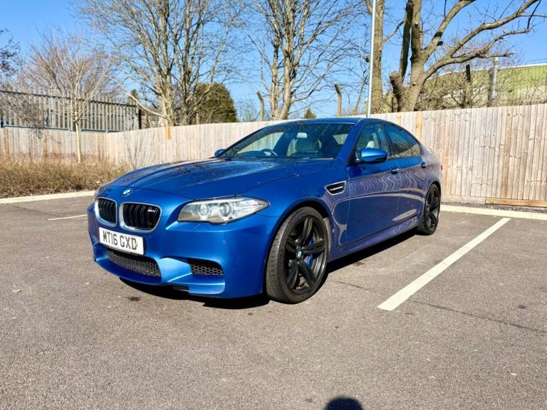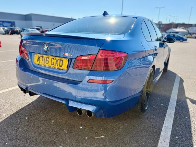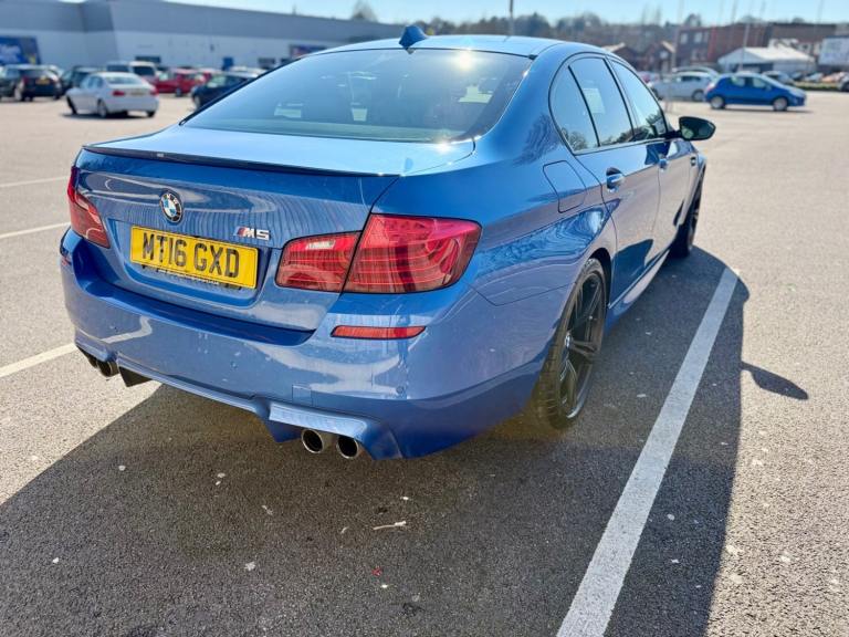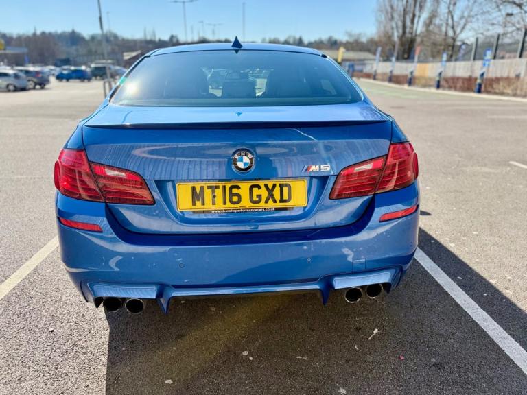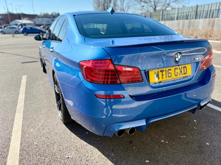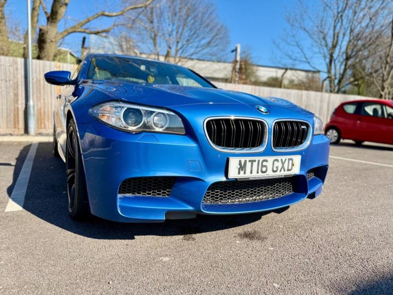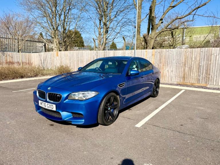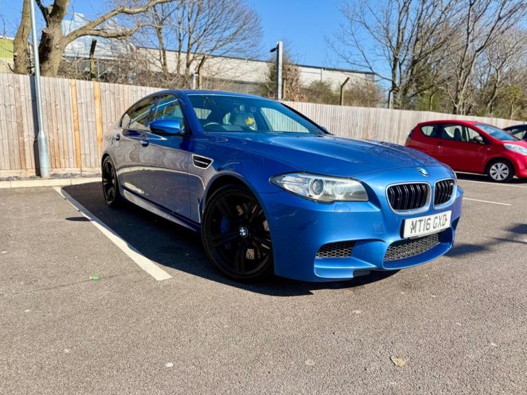 For sale is a very well maintained 2016 BMW M5 in Monte Carlo Blue with 91,625 miles on the clock and a full main dealer service history at BMW. This powerful machine has a 4.4 litres V8 engine and comfortably seats five with four doors for easy access. With an advisory free all clear MOT that expires on 04/02/2026, you can rest assured of its roadworthiness. The last MOT was carried out at Kwik-fit. It was a clean sheet with no comments/ no advisories. The previous MOT was carried out at a BMW main dealership, and recent MOTs pass rate is high! The vehicle has had 3 previous registered keepers, all of whom have taken excellent care of it. The interior is in pristine condition with luxurious leather platinum merino seats and state-of-the-art technology. This BMW M5 offers a perfect blend of performance, luxury, and practicality, making it an ideal choice for anyone in the market for a high-quality performance car. The blue exterior and the platinum merino white interior provides the perfect color combination. Great Spec. Sunroof, Heads Up Display, Cruise Control, Heated Seats, and Lots More! HPI Clear. No Plate Changes in the Past, No outstanding finance, never been stolen or involved in an accident, low number of keepers and long term ownership - the last keeper had it for almost 4 years. Vehicle age is outstanding with the car being under 10 years old. Average yearly mileage is good with average between 8000 and 12000 miles a year. Genuine warranted mileage - no mileage discrepancy has been found. With an estimated value of between £21,196 and £26,495, this car presents a great opportunity for you to own the ultimate driving machine.