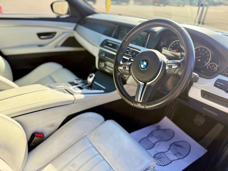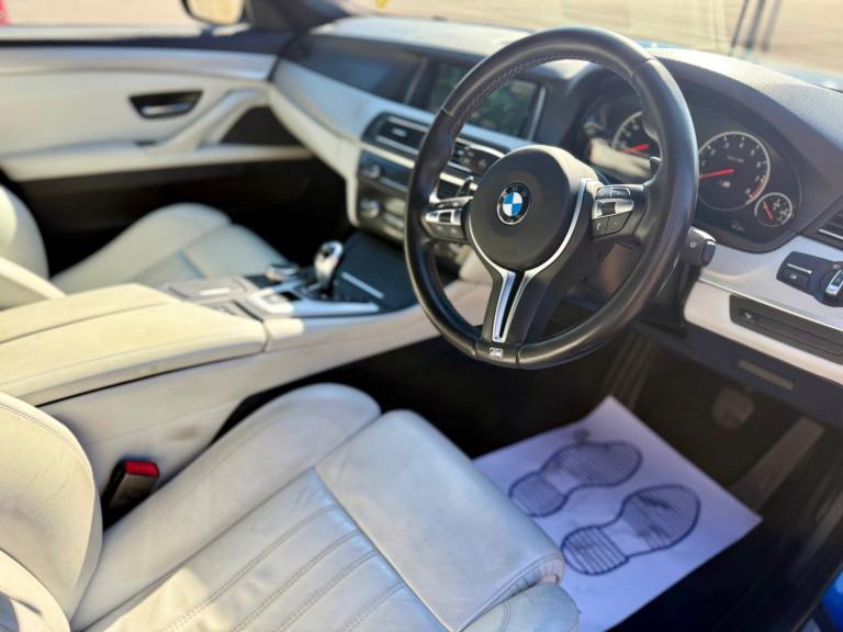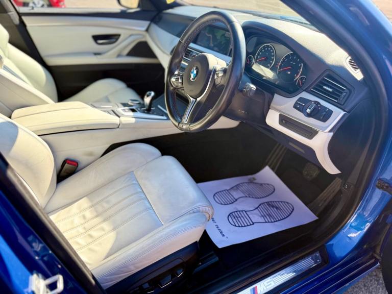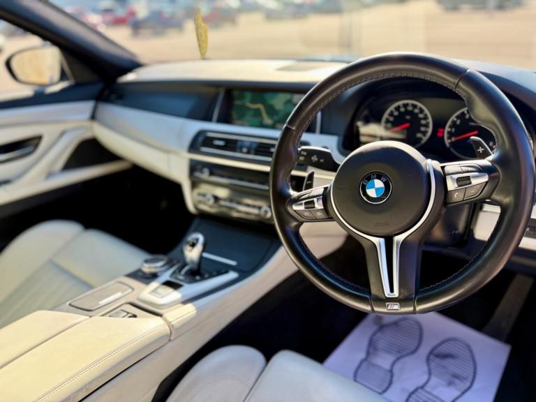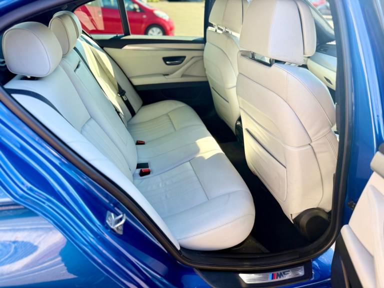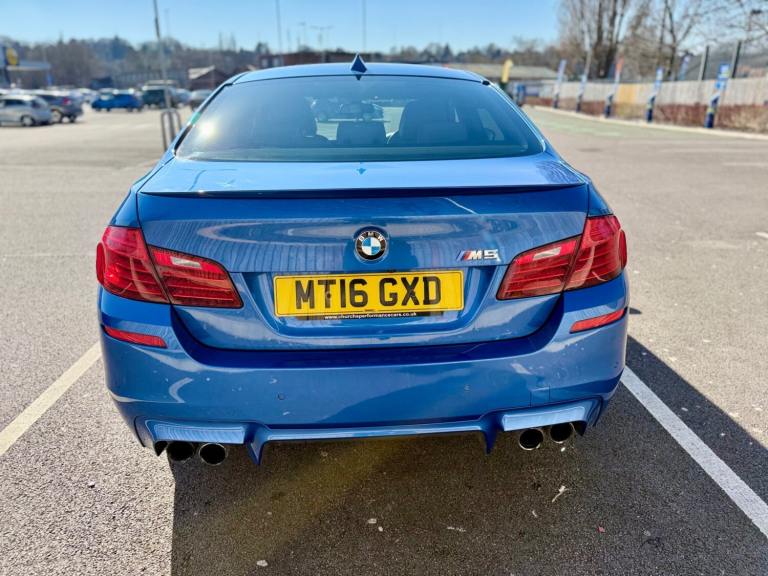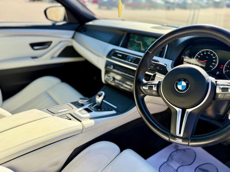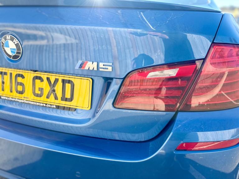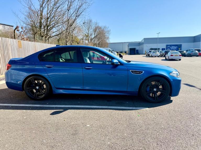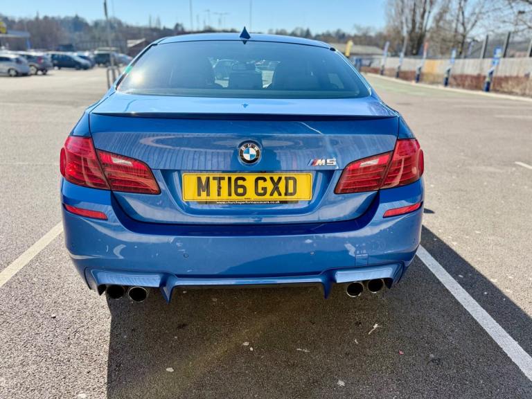 For sale is a very well maintained 2016 BMW M5 in Monte Carlo Blue with 91,625 miles on the clock and a full main dealer service history at BMW. This powerful machine has a 4.4 litres V8 engine and comfortably seats five with four doors for easy access. With an advisory free all clear MOT that expires on 04/02/2026, you can rest assured of its roadworthiness. The last MOT was carried out at Kwik-fit. It was a clean sheet with no comments/ no advisories. The previous MOT was carried out at a BMW main dealership, and recent MOTs pass rate is high! The vehicle has had 3 previous registered keepers, all of whom have taken excellent care of it. The interior is in pristine condition with luxurious leather platinum merino seats and state-of-the-art technology. This BMW M5 offers a perfect blend of performance, luxury, and practicality, making it an ideal choice for anyone in the market for a high-quality performance car. The blue exterior and the platinum merino white interior provides the perfect color combination. Great Spec. Sunroof, Heads Up Display, Cruise Control, Heated Seats, and Lots More! HPI Clear. No Plate Changes in the Past, No outstanding finance, never been stolen or involved in an accident, low number of keepers and long term ownership - the last keeper had it for almost 4 years. Vehicle age is outstanding with the car being under 10 years old. Average yearly mileage is good with average between 8000 and 12000 miles a year. Genuine warranted mileage - no mileage discrepancy has been found. With an estimated value of between £21,196 and £26,495, this car presents a great opportunity for you to own the ultimate driving machine.