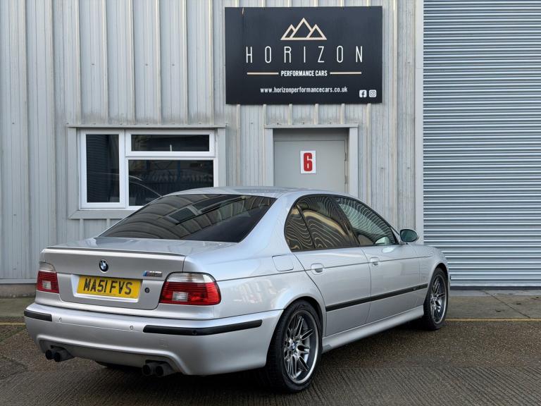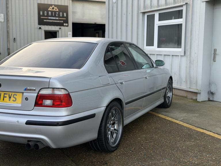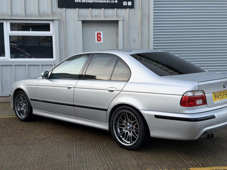 BMW M5 E39 4.9 V8, 2002 (51), facelift, only 116,000 miles, 12 service records (recently serviced), HPI clear, 2 keys, long MOT, 3 month warranty. A stunning example of these awesome modern classics. Finished in silver and complimented by the alloy wheels in Shadow Chrome it looks absolutely stunning. We bought the car directly from its previous owner, who was part exchanging after 4.5 years of ownership for a Yaris GR. The car represents exceptionally good value for money, especially compared to other similar vehicles which are commanding around £24k. In lovely condition throughout, especially for its age and mileage, the alloy wheels have just been refurbished and are unmarked, the tyres have lots of life remaining. The car drives superbly, pulls hard through all the gears. The spec on this M5 is very desirable as well: sunroof, heatedelectric seats, powerfold mirrors, cruise control TV, blueblack leather interior, satnav, parking sensors (not currently working), electric windows and mirrors, auto lights, Bluetooth, duel zone climate control and lots more. A lovely example all round, if you are looking for a well spec'd, great value, nice example, you won't be disappointed with this one. Viewings are by appointment only, part exchange is possible. All cars are supplied with a 3 month warranty. £19,995
