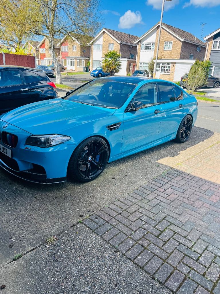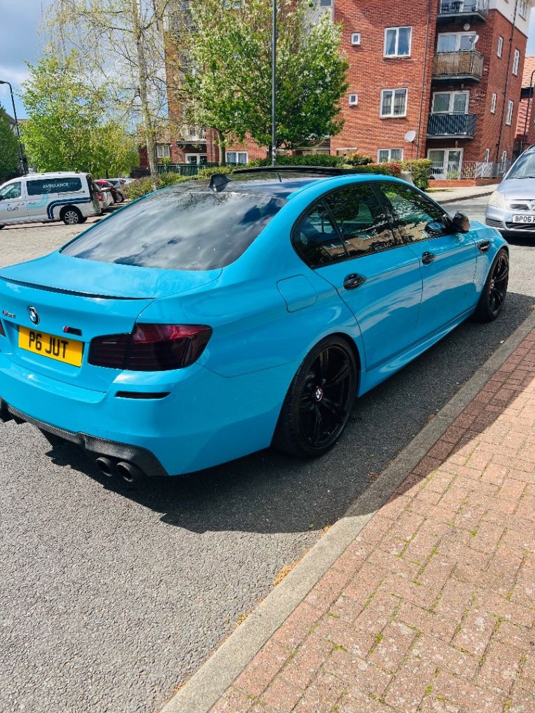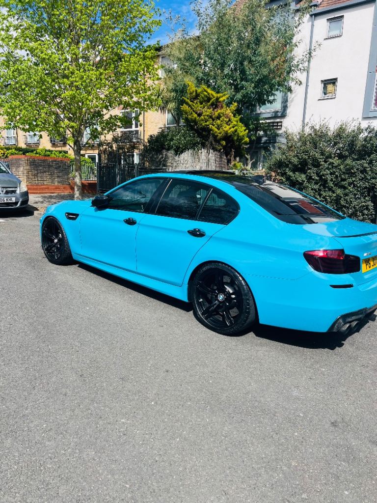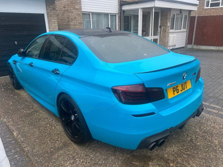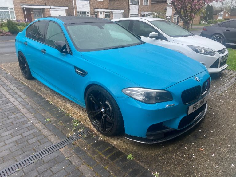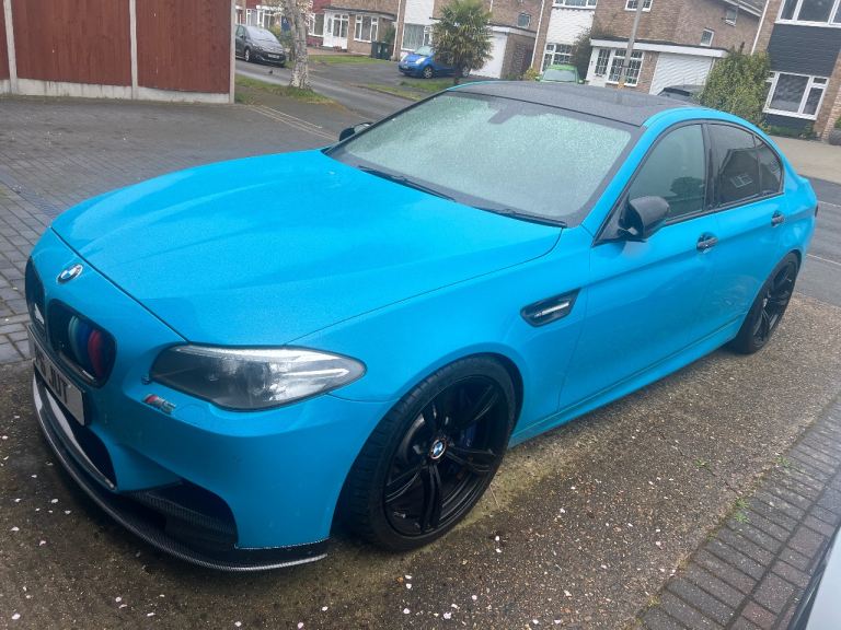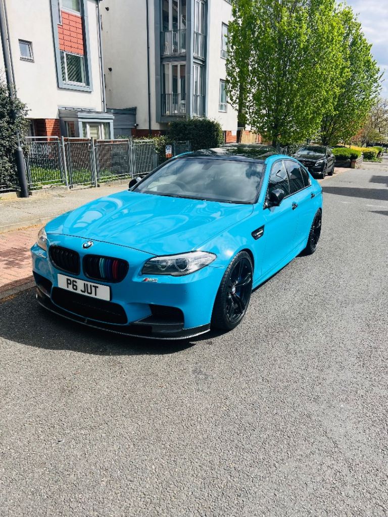 Stunning BMW M5 F10 Twin Turbo for Sale! Stage 2 Tuned (remapped) to 720 BHP by Velocity Tuning! Very good condition, heated seats, good sound system, push button start, wrapped to ocean light blue colour, Ghost immobiliser, full black leather, digital screen speed display, majority service history, 7 Speed, parking sensors, M Suspension, Sat Nav, drives very nice..