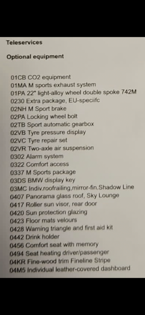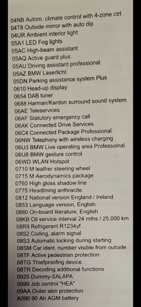 Rear window blinds, sky-lounge, display key, M sports exhaust, head-up-display, Harmon Kardon, Gesture control, laser lights, hot & cold cup holder, wireless phone charging tray, hot/cold cup holders,ambient lighting + more.