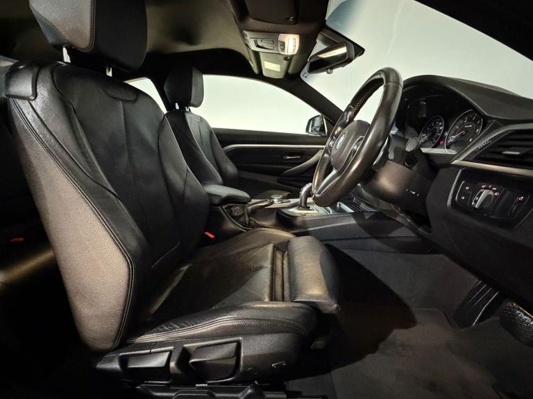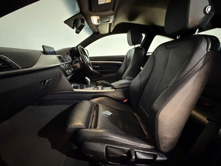 High-spec M Sport coupe with full black leather with heated seats, touchscreen sat-nav, keyless go, front & rear parking sensors and the efficient 2.0 diesel 190 BHP engine with smooth 8-speed auto box and paddle shift. Full BMW service history. The 4 Series coupe's sleek lines, refined cabin and strong effortless performance make it one of the best executive coupes - sporty yet comfortable every day. MOT valid until May 2026.