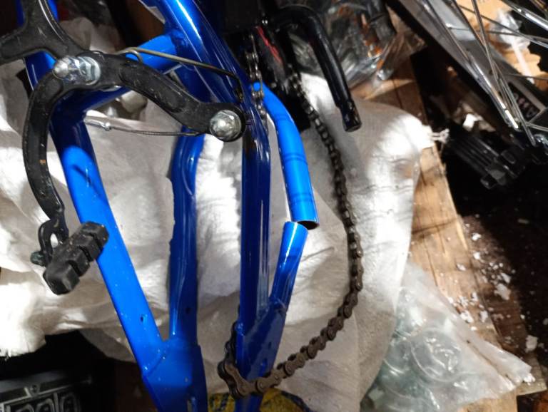3 x Brand New Never Used bikes job lot damaged frames For spares or repairs frames have been cut by supplier could possibly be welded. May have some bits missing please see attached pictures. Collect only Leeds