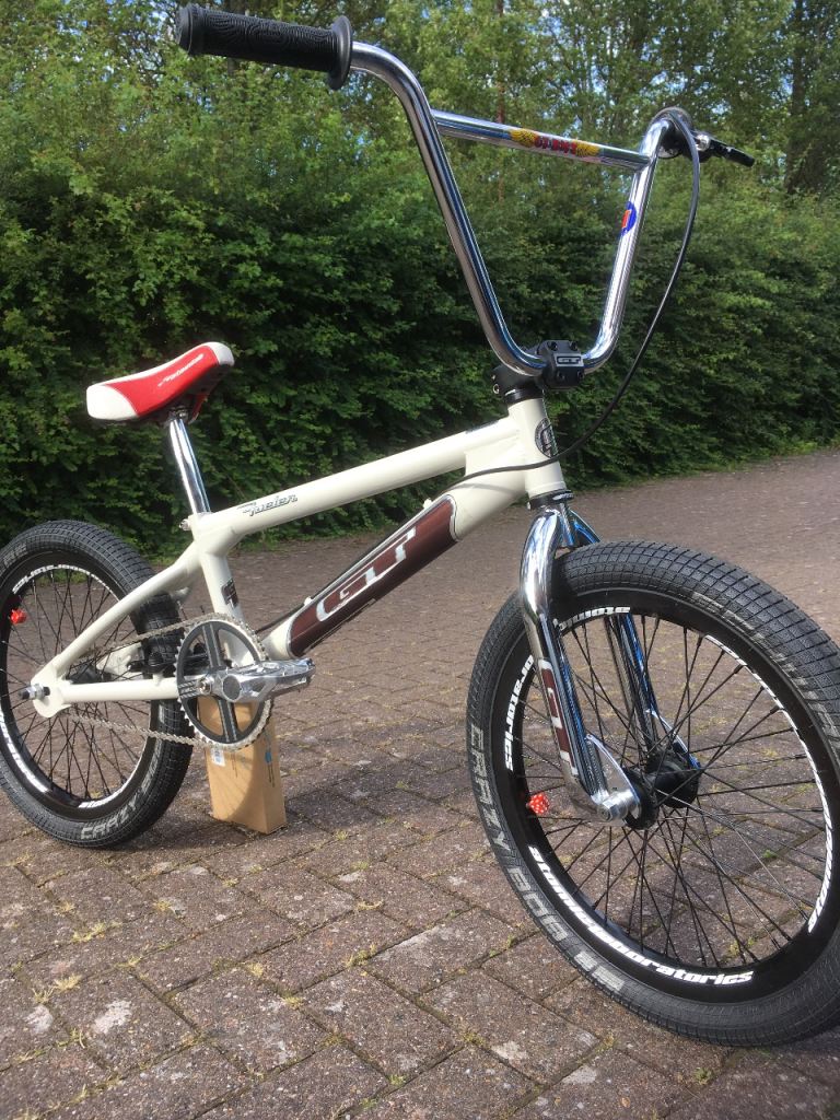 2001 USA made GT Fueler BMX. 100% chromoly f&f heavy duty dropouts. Redline twin pinch flight cranks, atomlab wheels, genuine 80s GT tall pro bars.