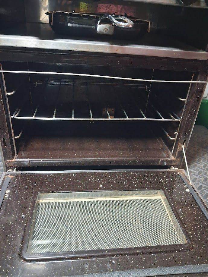 2 Burner, Grill & pan, oven.