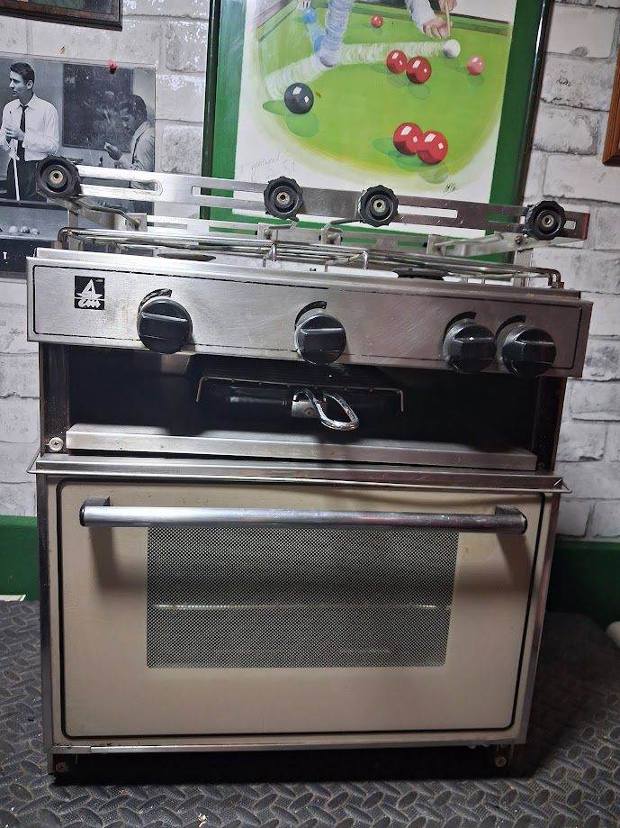 Boat Gas Cooker. x2 burners, grill & pan, kettle /pan support & oven.