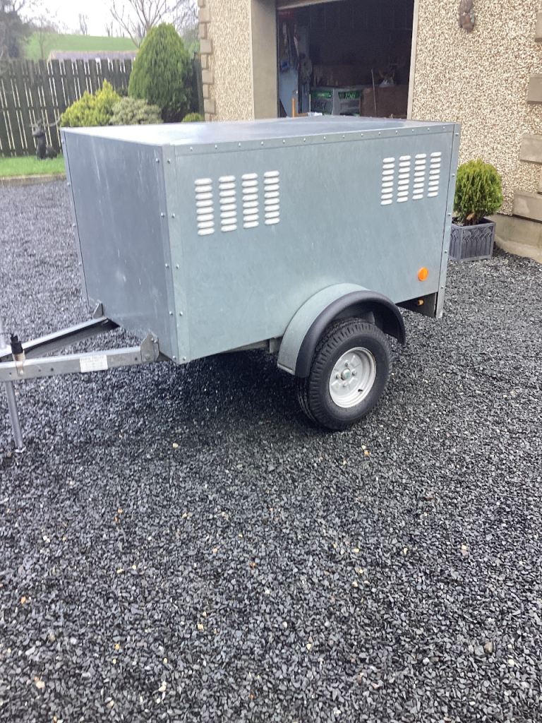 Broness galvanised camping /dog trailer 5 ft x4 ft in prop stand in new condition £625 ono