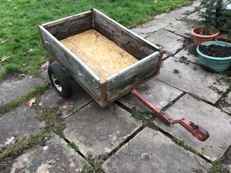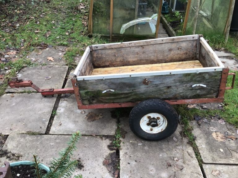 A small trailer in need of some repair. The trailer steel frame is in good solid condition, the sides need to be replaced and needs mud guards.