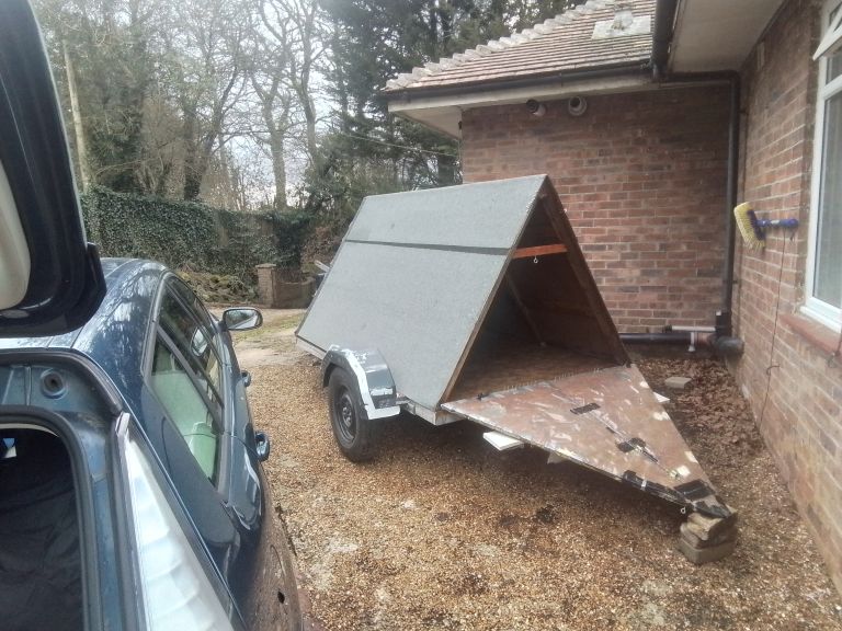 This is a converted trailer that can be towed anywhere and provide shelter. Would sleep two adults children or one adult.